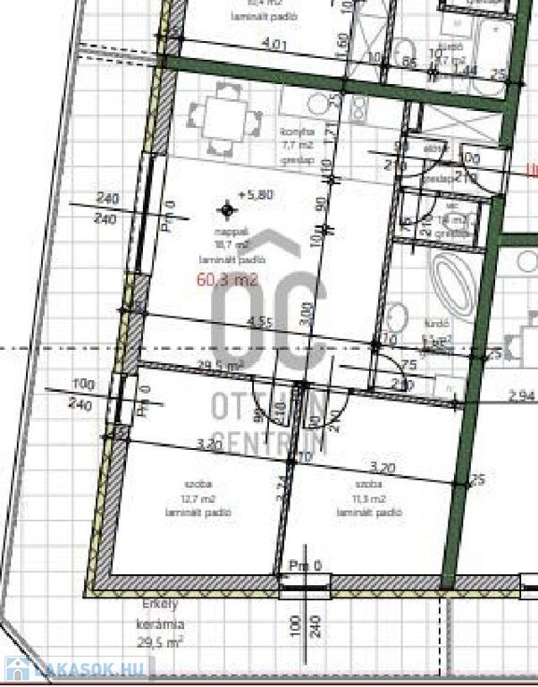 A hirdetésben szereplő I 2. emeleti lakás 60,3 nm alapterülettel és 29,5 nm-es erkéllyel rendelkezik. Elrendezése kiváló: magában foglal egy kényelmes előteret, külön WC-t, amerikai konyhás nappalit és étkezőt, fürdőszobát, valamint 2 külön nyíló hálószobát.