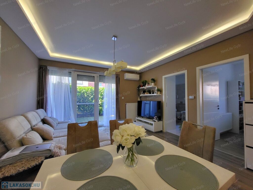 Ez nem álom – ez Győr-Ménfőcsanak egyik legcsendesebb részén található, 48 m²-es modern földszinti lakás mindezt valóra váltja.