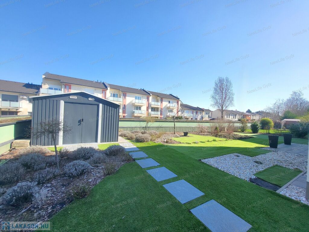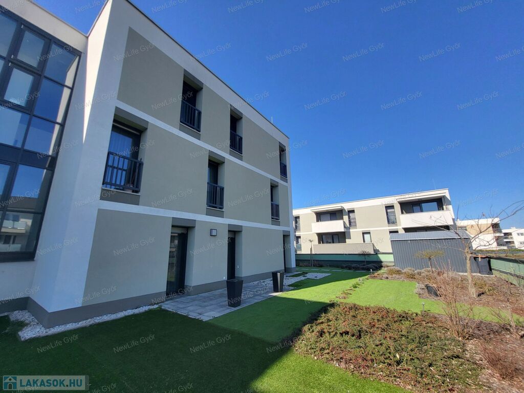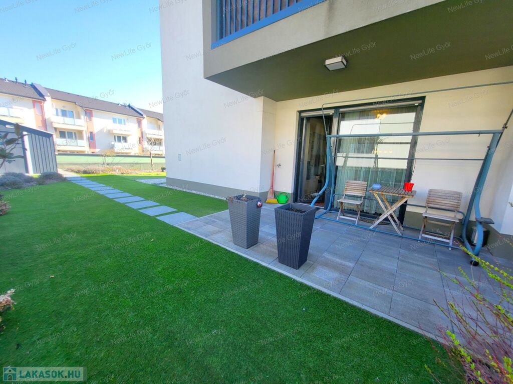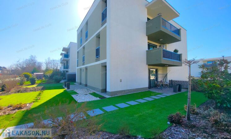 Győr egyik legkedveltebb, mégis nyugodt részén, Szabadhegyen, a Panoráma Liget zárt, igényes lakóparkjában található ez a 2021-ben épült, földszinti, kertkapcsolatos luxuslakás. Az utca csendes, átmenő forgalomtól mentes, mégis minden karnyújtásnyira van: buszmegálló egy perc sétára, a közelben iskola, óvoda, üzletek, pékség, gyógyszertár – a mindennapok kényelme adott.