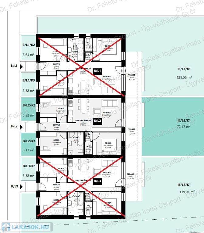 B tömb - L2 - középső lakás– fűtéskész átadás: 2026. április vége