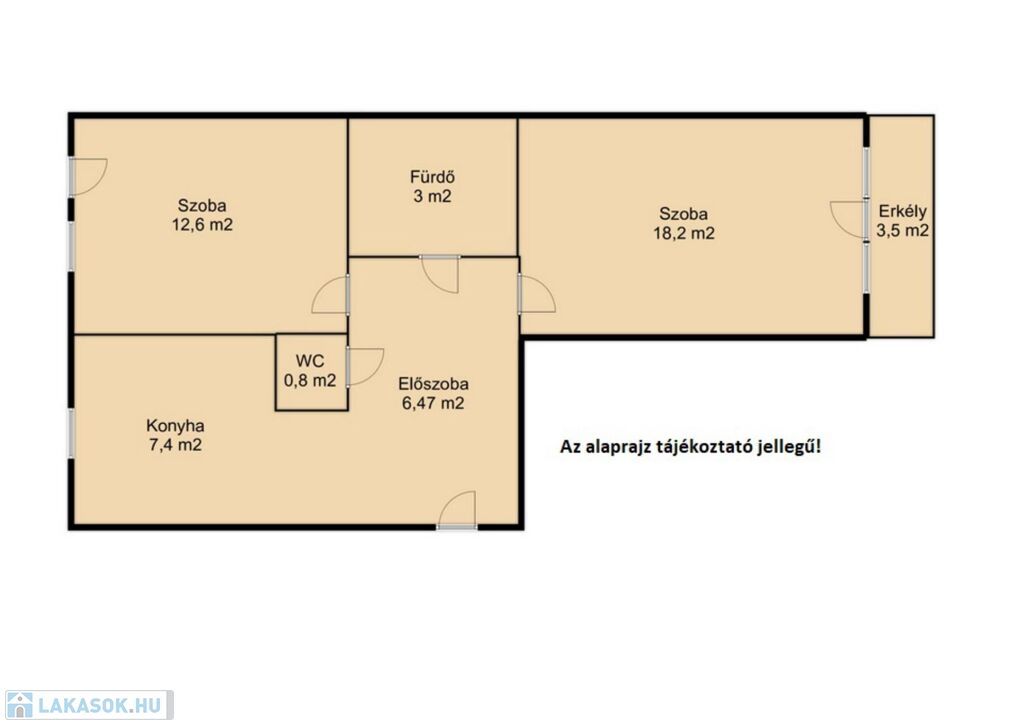 Az ingatlan elosztása: 2 szoba külön nyíló bejárattal, konyha, fürdőszoba, külön WC, illetve egy erkély.