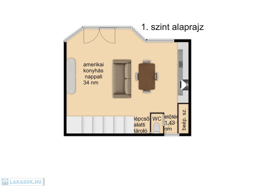 - Nappali: Modern amerikai konyhás nappali, ahol az egész család kényelmesen elfér.