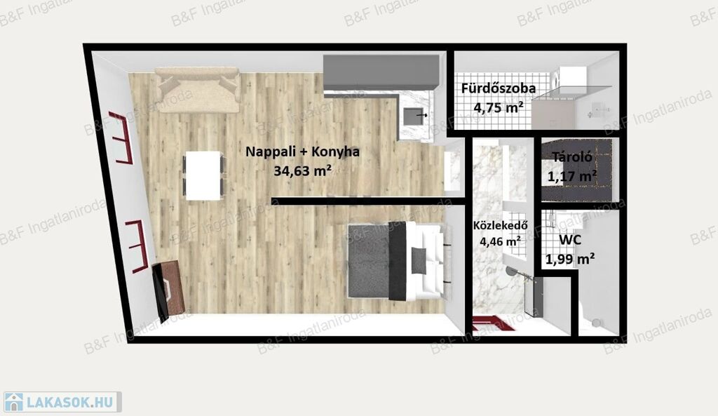 - Több féle kialakítási lehetőség (akár 1+2 fél szobássá is lehet alakítani)
