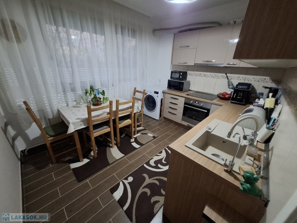 Hajdúszoboszlón Major utcán eladó egy 1 emeleti, 65 nm,3 szobás nagy ebédlőkonyhás, erkélyes, teljes körűen felújított szép lakás.A konyha és folyosó járólapos,a szobák laminált parkettásak és külön nyílnak.A fűtést távfűtés biztosítja állandó meleggel.Magasfényű konyhaszekrény került beépítésre,beépített gépekkel mosogatógéppel,sütővel.A nagy nappaliban felszerelésre került egy hűtő-fűtő klíma is.A fürdőszoba és wc külön helyezkedik el egymástól.A fürdőszoba teljes felújítást kapott új csempével,vízszereléssel és szaniterekkel.A folyosón teljesen új beépített szekrény került felrakásra, ami tárolásra és gardróbnak is kiválóan alkalmas.Új több ponton záródó fém bejárati ajtó került beépítésre.Kiváló elosztás,tágas világos jól élhető lakás jó szomszédokkal.A lakás parkra néző.Tiszta rendes lépcsőház jellemzi,közös tárolóval.Közelben boltok,piac,orvosi rendelő,Spar,fürdő,buszmegálló.Érdemes megnézni.Bármikor megtekinthető időpont egyeztetéssel.További ingatlanjaink a Teleingatlan oldalán több nyelven is hitel ügyintézéssel és ügyvédi segítségnyújtással egybekötve.Az ár irányár.