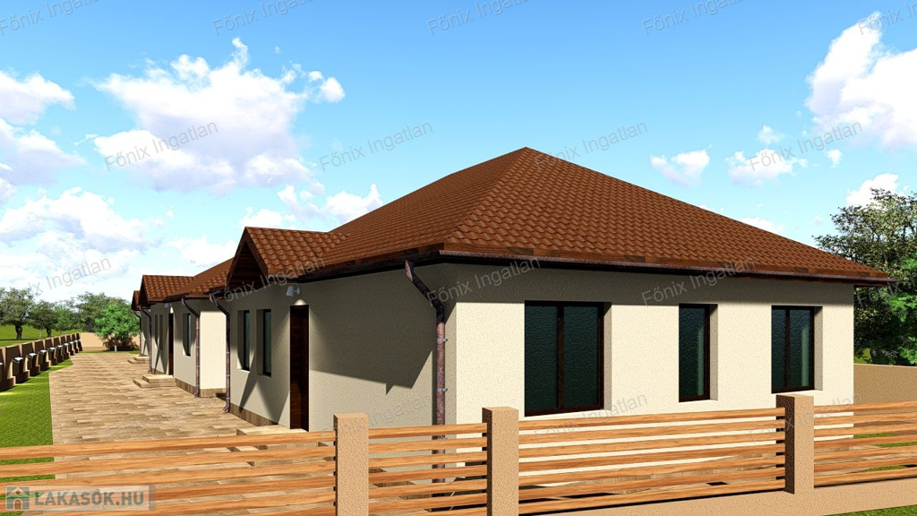 102,96 m² hasznos alapterület, ebből 80,13 m² lakótér – amerikai konyhás nappali, 2 hálószoba, 2 WC/fürdő, garázs, saját kert.
