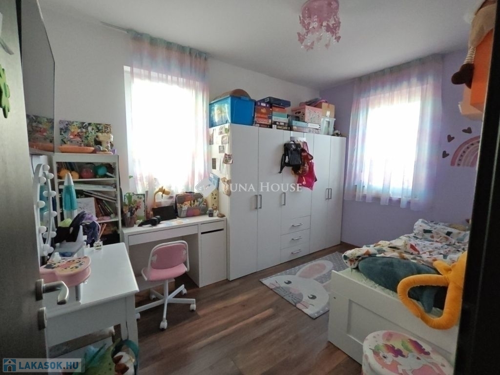 Halásztelek csendes, családias részén eladó egy hibátlan állapotú 2021-ben épült, földszinti lakás, amely 96 m²-es alapterületével és a nappali + 4 hálószobás kialakításával ideális választás lehet családok számára is.