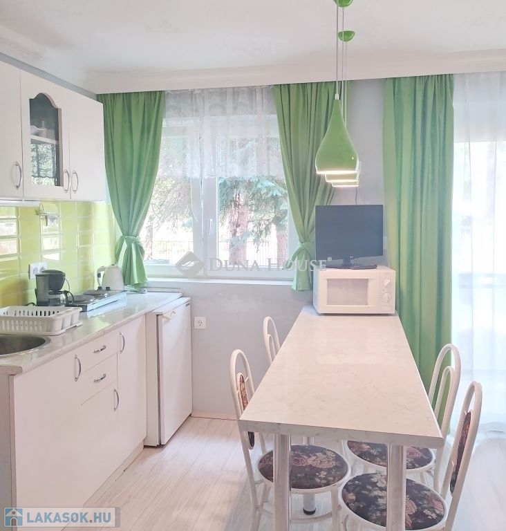 Harkány csendes, zöldövezeti részén kínálunk megvételre egy téliesített, bejáratott vendégkörrel rendelkező, felújított nyaralót.A Gyógyfürdő közelsége miatt tökéletes választás befektetésnek, vagy akár állandó lakhatásra is alkalmas fiatalos lakás.A felújítás tartalmazza:- Új nyílászárók, bejárati ajtó- Teljes villamoshálózat korszerűsítése- Amerikai konyha-nappali kialakítás- Klíma felszereléseA négy szintes társasház saját, zárt parkolóval rendelkezik, valamint szépen karbantartott, parkosított udvarral.A lakástól pár lépésre elérhető a Gyógyfürdő, bevásárló egységek, illetve hangulatos éttermek.Az ingatlan bútorozottan eladó, amelyet az ár tartalmaz.További információért, illetve megtekintéssel kapcsolatban várom hívását!