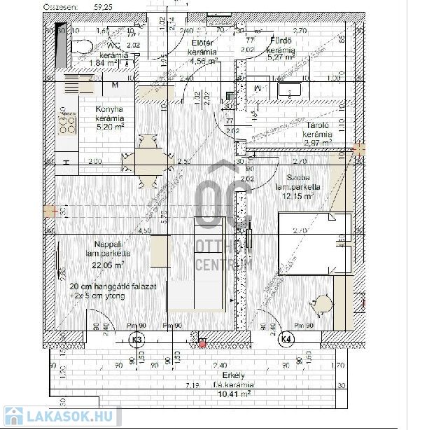 Az alábbiakban kínált 1. emeleti 59 m2- es lakás egy amerikai konyhás nappalival, hálószobával, fürdőszobával, tárolóval és 10 m2- es erkéllyel rendelkezik.