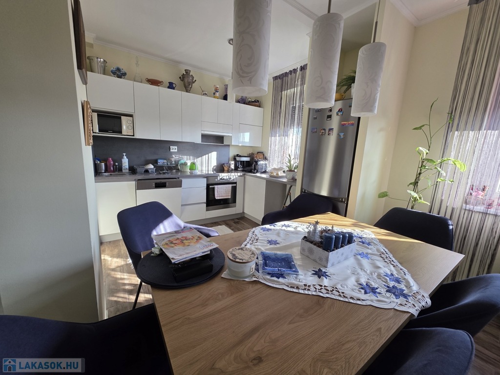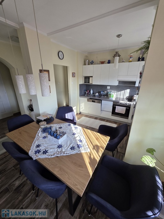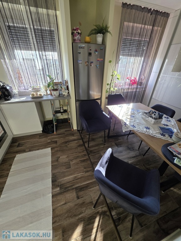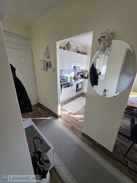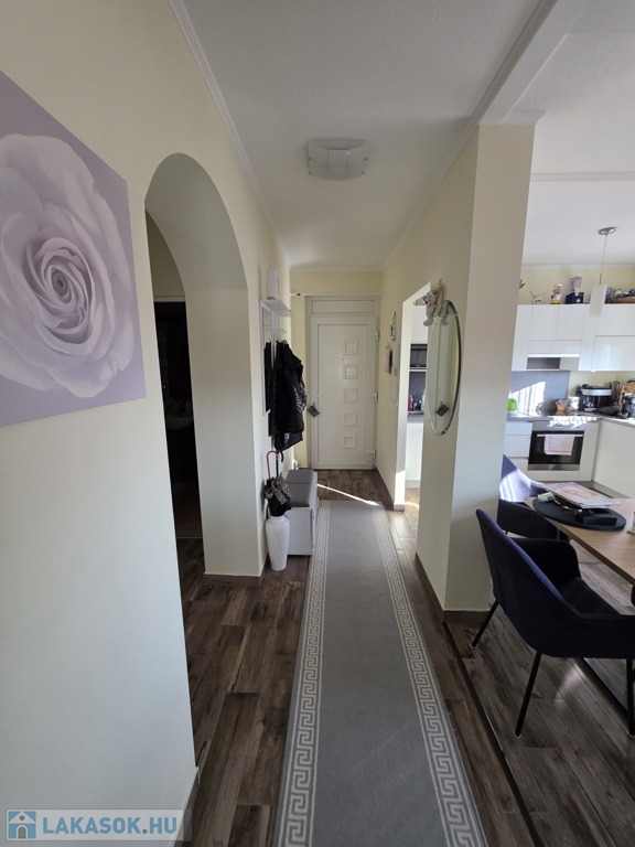 Zala vármegye, Hévíz 61m2-es erkélyes lakás eladó. A kedvelt zalai fürdőváros központjának közelében, a nyolcvanas évek első felében épült ötszintes, szigetelt társasház negyedik emeletén található, felújított, korszerűsített, gépesített és bútorozott ingatlanban két szoba erkéllyel, konyha étkezővel, kamra, közlekedő, fürdőszoba és illemhelyiség került kialakításra. Az új, redőnnyel és szúnyoghálóval felszerelt ablakokkal rendelkező, légkondicionált lakás melegéről távfűtés gondoskodik, radiátoros hőleadókkal. Parkolni a társasház mellett díjmentesen lehetséges.