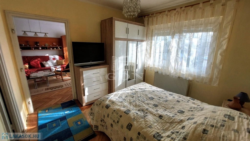 A nappaliból nyílik a hálószoba, ahová az előszoba felől egy kis átjárón is eljuthatunk.