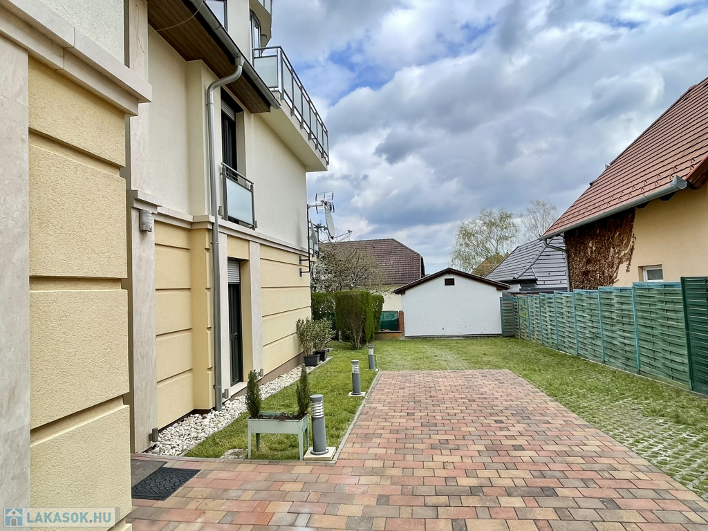Az épület téglaépítésű, 10 cm-es külső hőszigeteléssel és cseréptetővel ellátott, hangulatos, rendezett közös udvarral, ahol a lakáshoz saját kocsibeálló is tartozik.