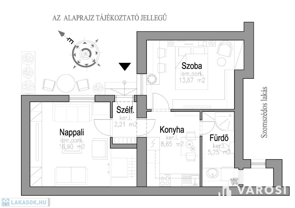 - Lakás: ~ 47 m2 (lásd: alaprajz)