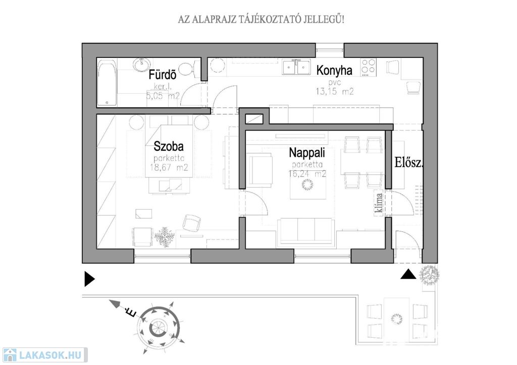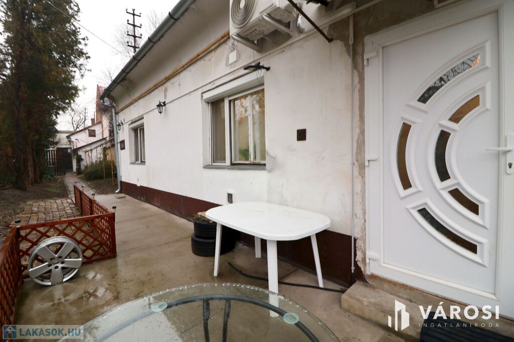 Az ingatlanhoz tartozik egy kis burkolt lekerített terasz, és saját udvari tároló.