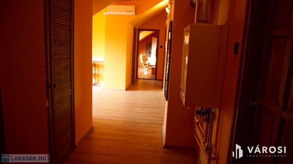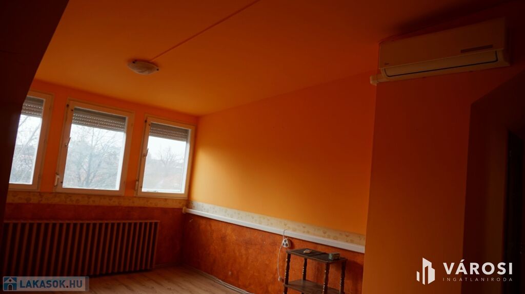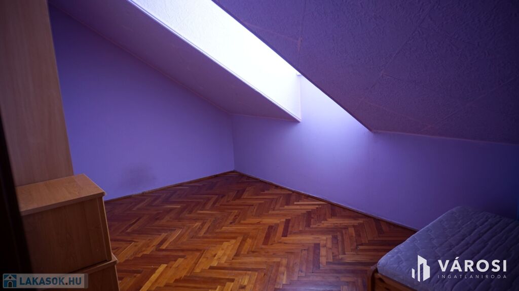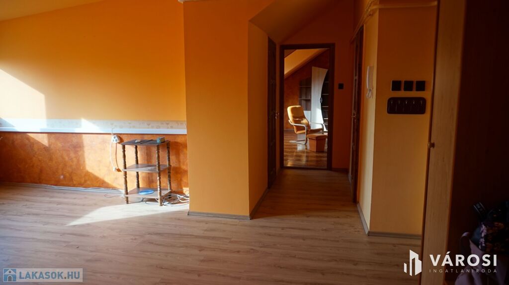 Hódmezővásárhelyen a Kálvin tér szomszédságában eladó, vagy szegedi panellakásra cserélhető egy szép állapotú, tágas napfényes tetőtéri lakás. Bruttó alapterülete 105 m2, nettó 80 m2 /az 1,9 m magasság által bezárt alapterület/.
