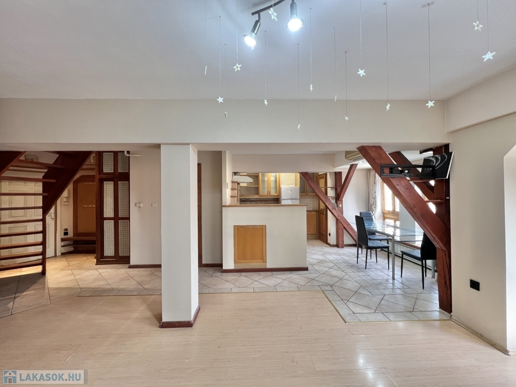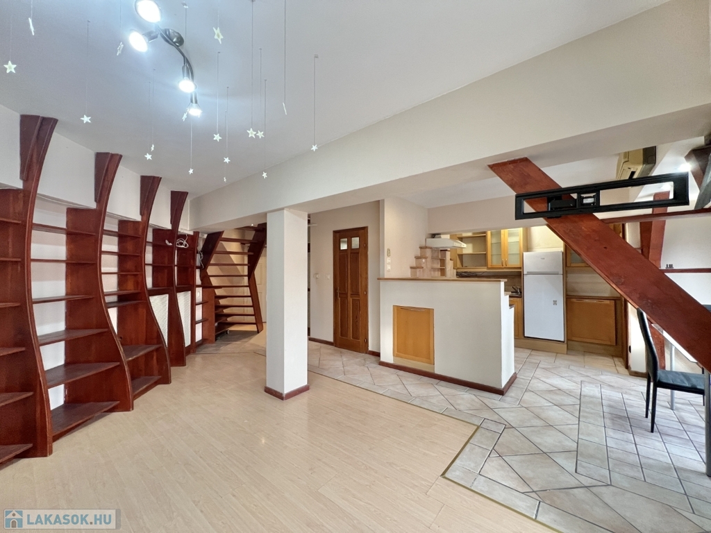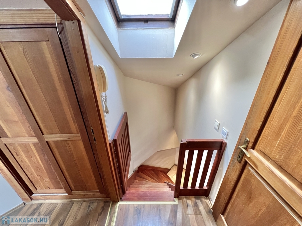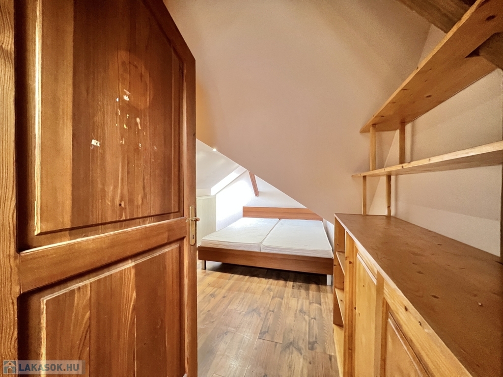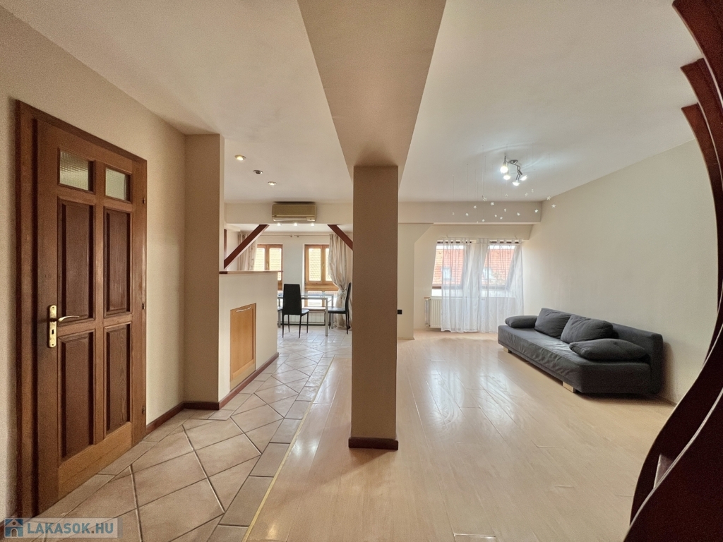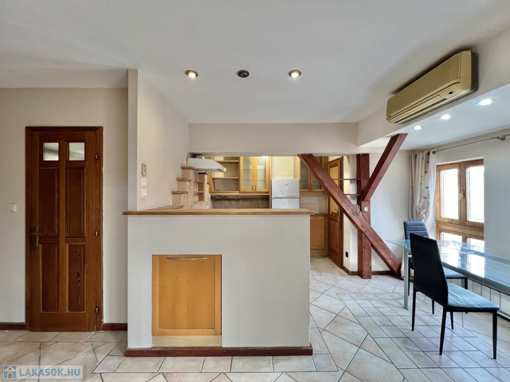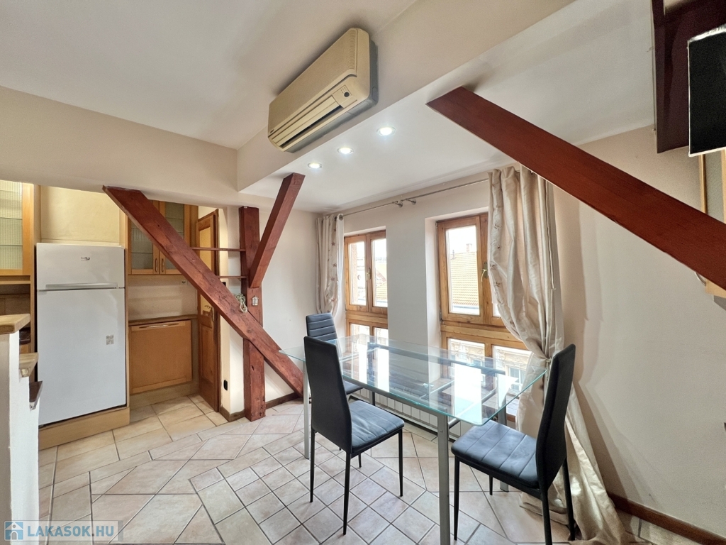 Kaposváron a belvárosban – a Fő utcában – liftes társasház, 3. emeletén lévő 60 m2-es, azonnal költözhető lakás - a képeken látható műszaki állapotban - eladó. A lakás alsó szintjén előszoba-nappali, étkező-konyha, fürdőszoba-wc helyiségek kerültek kialakításra. A tetőtérbe az előtérben lévő lépcsőfeljáró vezet fel, ahol további 2 félszoba, wc-kézmosó vannak. A lakás fűtése és melegvíz ellátása kombi gázkazánnal megoldott, valamint légkondicionáló is felszerelésre került. Az ingatlan a lokációja miatt akár befektetésnek is kitűnő lehetőség, számos közintézmény csupán néhány száz méteren belül található, például a Megyeháza, Törvényszék, Kormányhivatal, Polgármesteri Hivatal, de akár a Kossuth tér is csupán 1 perc sétával elérhető.