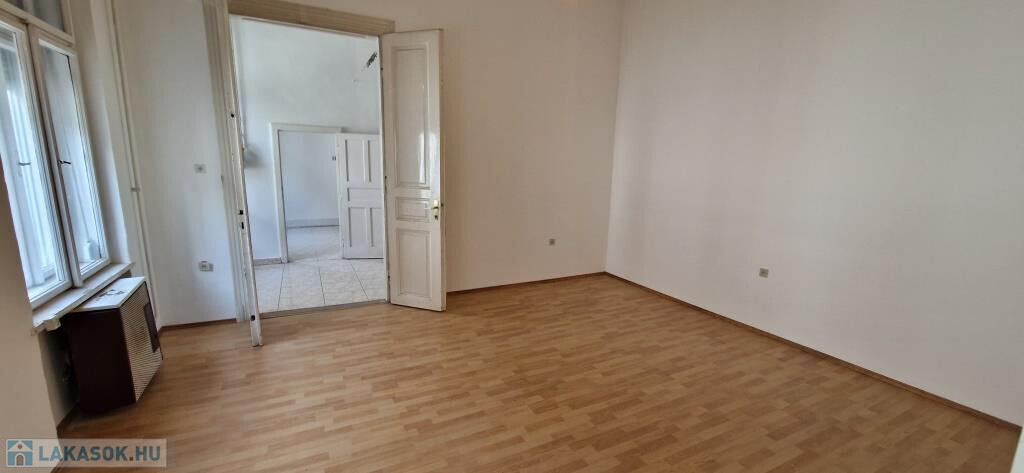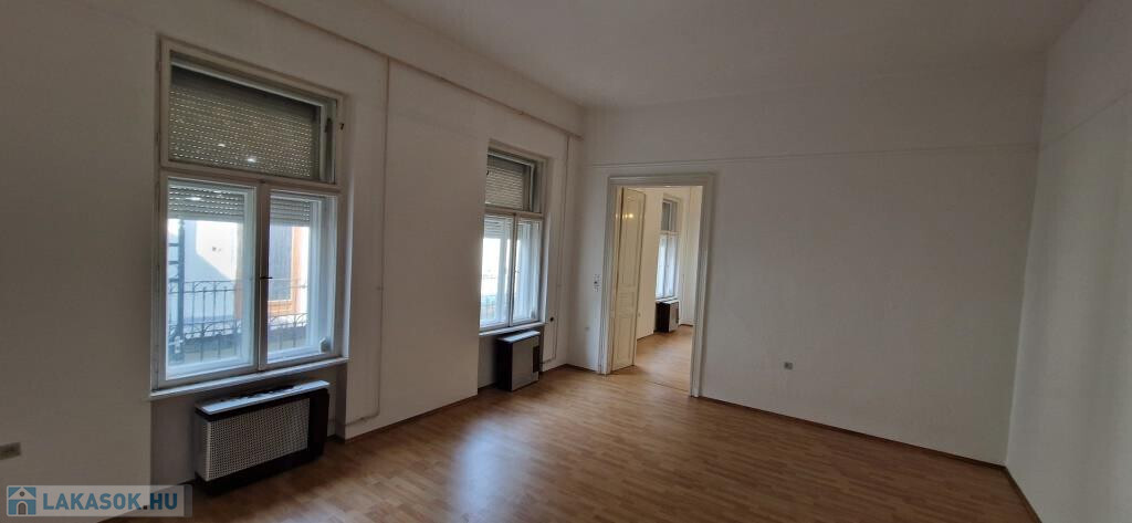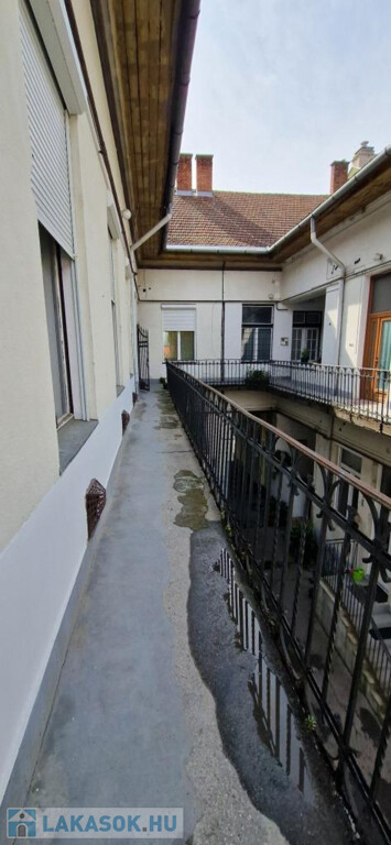 Kaposvár belvárosában, az Ady Endre utcában kínáljuk megvételre ezt az első emeleti, 93 m2-es lakást. Méretei és elosztása alapján alkalmas egy nagyobb családi otthon kialakítására, vagy kettéválasztva két kisebb lakást is létre lehet hozni belőle. Bejárata függőfolyosóról nyílik, ami saját erkélyként is használható, mivel leghátsó lakás lévén, le van zárva. Az előtérből jobbra két egymásból nyíló, nagyméretű, parkettás szoba található, a végén pedig a fürdő. Balra az egykori konyha van a kamrával, és egy kicsi, de ablakos tároló helyiség. A belmagasság lehetővé teszi a galériázást, ezzel szükség szerint tovább növelhető a lakóterület. Minden ablak nyugati tájolású, a függőfolyosóra, illetve a Kontrássy köz felé néznek. A fűtés egyedi gázos, konvektoros. Ha valaki kettéválasztaná a lakást, ötletes megoldásokkal, galériákkal, álmennyezettel akár két 50-60 m2 lakóterületű tágas, barátságos és praktikus otthont is kihozhat belőle. Remek lehetőség a belváros szívében befektetésként, vagy saját használatra egyaránt!