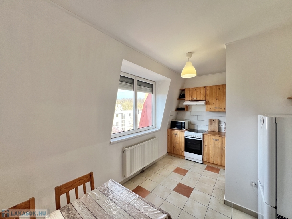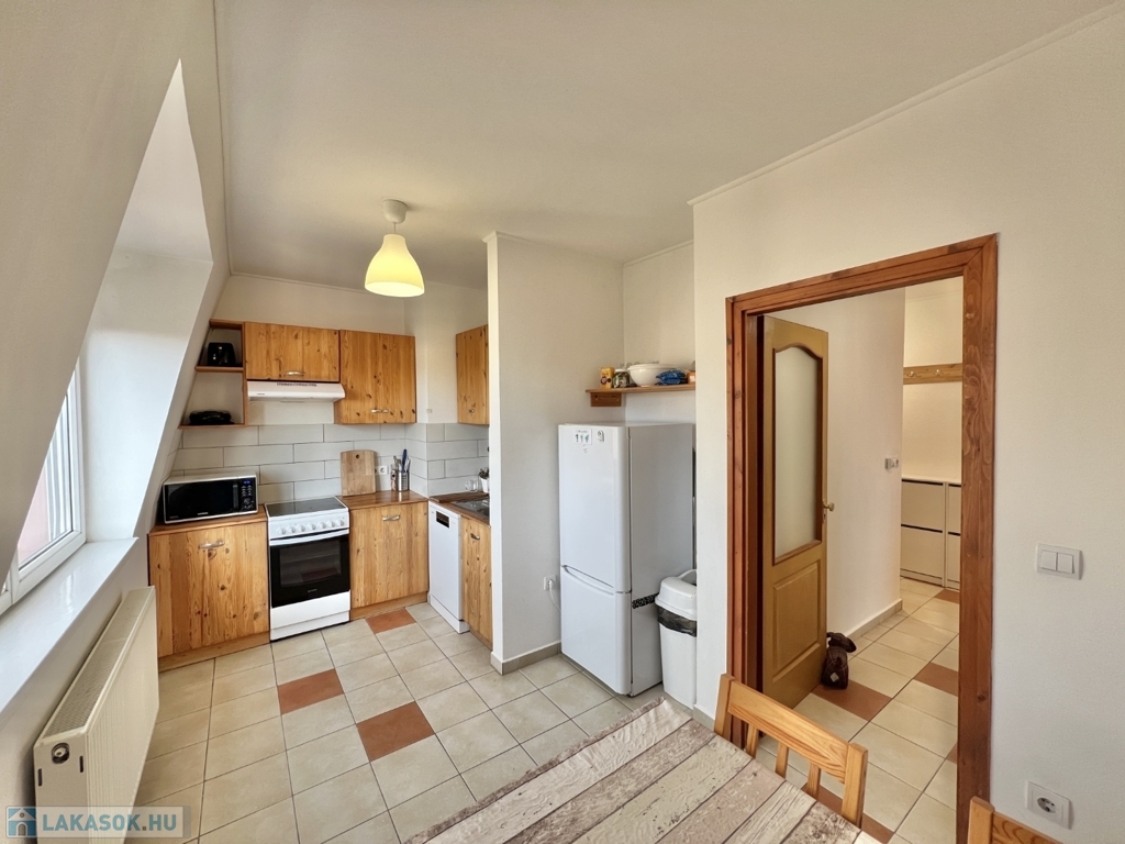 Kaposváron a Zaranyi lakótelepen, csendes környezetben lévő, rendezett társasház 4. emeletén a tetőtérben, 60,61 m2-es, jó állapotú, akár rövid időn belül birtokba vehető D-Ny-É tájolású lakás eladó. A lakásban 2 szoba, kisebb erkély, előszoba, konyha, gardrób, fürdőszoba, wc helyiségek találhatóak, a lakás fűtése és melegvíz ellátása fürdőszobában található Biasi típusú kombi gázkazánnal megoldott, valamint a nappaliban légkondicionáló került felszerelésre, illetve tartozik hozzá közös tároló is. A parkolás a ház előtt ingyenesen lehetséges, bevásárlási lehetőség 300 m, általános iskola és buszmegálló 1000 m. Az ingatlan az elhelyezkedése miatt akár befektetésnek is kitűnő lehetőség!