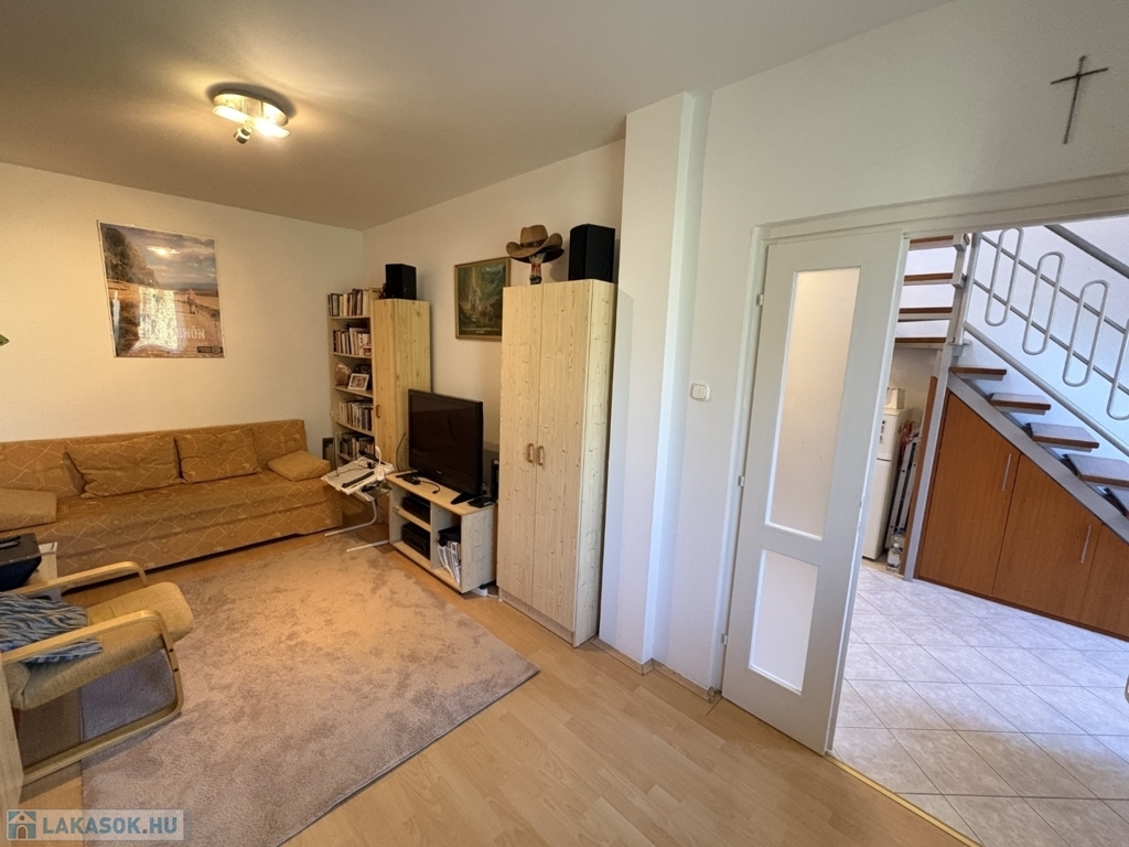 Kaposváron a belvárosban, a Németh I. fasor utcában - a kórházzal szemben - található rendezett társasház 3. emeletén, 62 m2-es lakás eladó. A lakás alsó szintjén előszoba, 1 szoba, étkező-konyha, kamra, fürdőszoba-zuhanyzó-wc helyiségek találhatóak. A felső szintre az étkezőből vezet fel a lépcsőfeljáró, ahol kis előtér, 1 szoba, fürdőszoba-wc kerültek kialakításra. A lakás rezsije nagyon kedvező, a fűtése és a meleg víz ellátása kombi gázkazánnal megoldott. A lakás befektetésnek is kitűnő lehetőség, a közvetlen közelében található a kórház, vagy több középiskola és számos közintézmény is.