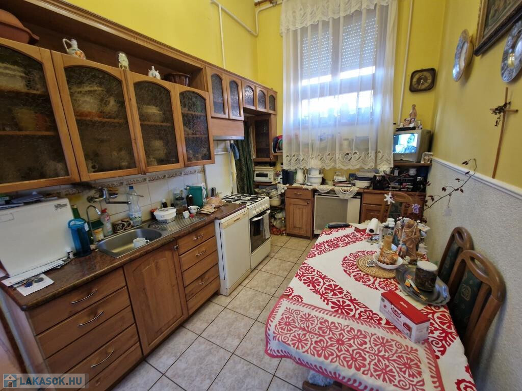 Kaposvár belvárosában, az Ady Endre utca és a Berzsenyi utca ölelésében egy csendes, belső részen kínáljuk megvételre ezt a jó adottságú lakást. Alapterülete 57,7 m2, kétszobás, elosztása praktikus, déli tájolású. Kis előtérbe lépünk, ehhez csatlakozik jobbra „L” alakban a konyha, és a konyhán túl az egyik szoba. A másik szoba a bejárattól balra található, míg a fürdő és a külön kialakított WC egy kis közlekedőn át érhető el a bejárati ajtóval szemben. A fürdőben kád, zuhanyfülke és bidé is található, minden igényt kielégít. A lakás belmagassága megenged galériázást, amit kihasználva az egyik szobában fel is építettek egyet. Így kialakult a galérián egy plusz háló, míg alatta egy barátságos, kuckós rész. Praktikus kamra is tartozik a konyhához, valamint akár erkélyként is jól kihasználható a lakás teljes hosszában előtte lévő függőfolyosó, mivel arra más nem jár. A lakás fűtése egyedi gázos, konvektorokkal megoldva, külső nyílászárói újak, hőszigeteltek, fakeretesek. A rezsi a vastag téglafalaknak és a jó minőségű ablakoknak, dupla bejárati ajtónak köszönhetően meglepően alacsony a belmagasság ellenére is. A lakás jó állapotú, kifejezetten jó a lokációja a belváros csendes szegletében.