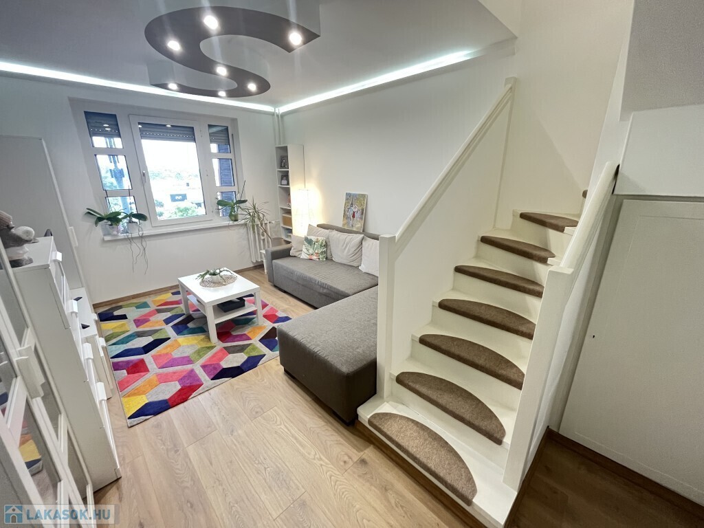 Kaposváron a belvárosban, a Berzsenyi utcában, rendezett társasház 3. emeletén lévő 58,1 m2-es lakás - igény esetén a képen látható berendezéssel együtt is - eladó. A lakásban az alsó szinten előszoba, konyha, fürdőszoba-wc, nappali helyiségek találhatóak. A felső szinten előtér, 2 szoba, zuhanyzó-wc kerültek kialakításra, valamint légkondicionáló is felszerelésre került. A lakás fűtése házközponti fűtéssel megoldott, a parkolás az épület zárt udvarában lehetséges díjmentesen. A közelben megtalálható - 200 m távolságon belül - Spar, Tesco, OBI, buszmegálló, gyógyszertár, általános iskola, óvoda, a Kossuth tér 5 perc alatt kényelmes sétával elérhető. Az ingatlan az elhelyezkedése és a kialakítása miatt befektetésnek kiváló lehetőség!