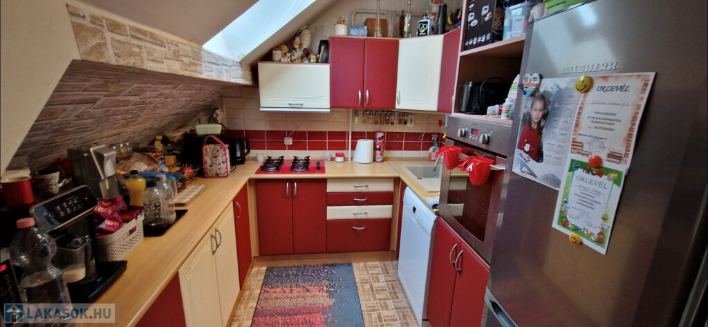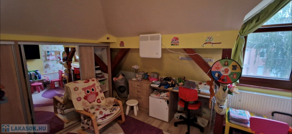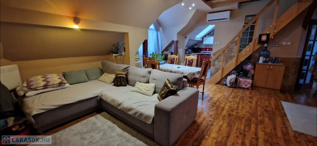 Kaposvár egyik kedvelt, csendes, nyugodt részén, a Zaranyi lakótelepen kínáljuk megvételre ezt a kiváló állapotú, első emeleti, belső kétszintes téglalakást. A társasház folyosójáról az előtérbe lépünk, majd a közlekedőből nyílik jobbra a külön kialakított fürdő és WC, balra pedig egy háló. Tovább haladva jutunk a tágas étkező-nappaliba, ami egylégterű a konyhával. Ide csatlakozik egy másik háló, illetve innen vezet fel a lépcső a galérián kialakított harmadik szobába. A lakás tetőtérbeépítéssel készült, így a falak és a mennyezet játékos felületeket, tereket hoznak létre, nem mindenhol a megszokott derékszögekkel találkozunk. A ház 1996-ban épült, de a külső nyílászárókat, valamint a bejárati ajtót két éve kicserélték. A fűtés egyedi gázos, Ariston gázkazán biztosítja a fűtést és a meleg vizet. Plusz légkondi berendezés szolgálja a komfortérzetet. A lakás alapterülete a tulajdoni lap szerint 67,3 m2, de ehhez még hozzáadódik a 22 m2-es galériás szoba, így ténylegesen 89,3 m2 áll rendelkezésre. Tartozik a lakáshoz több saját és egy közös tároló. A környéken minden megtalálható, ami a hétköznapi élethez szükséges.