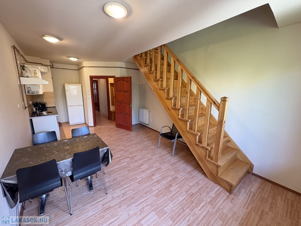 Kaposváron a belvárosban a Gróf Apponyi A. utcában, rendezett társas ház 1. emeletén lévő 74 m2-es, erkélyes lakás eladó. A lakás alsó szintjén előszoba, nappali-konyha-étkező, belső udvar felé néző erkély, további 1 szoba-erkéllyel, valamint fürdőszoba-wc helyiségek vannak. A tetőtérben további 2 szoba, fürdőszoba-wc helyiségek kerültek kialakításra. A lakás fűtése és meleg víz ellátása kombi gázkazánnal megoldott. Az ingatlan az elhelyezkedése és kialakítása végett is akár kiváló befektetési lehetőség! Parkolás a jelenleg az utcán - fizetős övezetben - lehetséges, bevásárlási lehetőség, buszmegálló, kórház, gyógyszertár pár száz méter távolságra találhatóak, továbbá általános iskolák egyéb közintézmények is 5-6 perc kényelmes sétával elérhetőek.