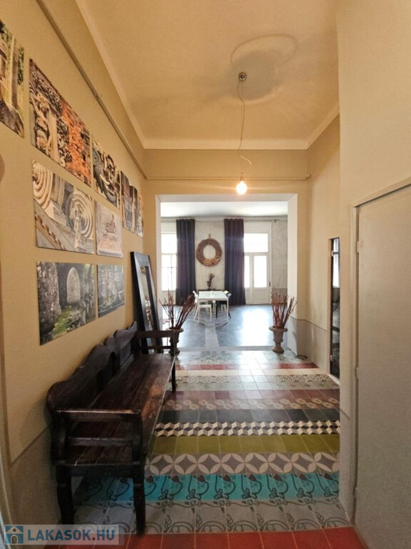 Kaposvár belvárosának szívében, az Ady Endre utcában kínáljuk megvételre ezt az újra gondolt, minőségi módon felújított lakást. Az első emeleten helyezkedik el, alapterülete 97 m2, helyiségei tágasak, világosak. Az előszoba fogad, itt már látszik is szemben a különösen nagyméretű nappali. Balra található egy hálószoba, jobbra a konyhába jutunk, ahová kamra is csatlakozik. Az előtér kiszélesedik, innen nyílik a külön kialakított WC és a fürdő az épített zuhanyzóval. Burkolata egészen különleges, játékos, de az egész lakásra jellemző egy nem szokványos jó hangulat és harmónia. Ezt tökéletesen kiegészíti a kis kőkorlátos, sétáló utcára néző erkély. A fűtés egyedi gázos, konvektorokkal megoldva, a nyílászárók autentikusak, eredetiek, de felújítottak. A felújítás során a villanyvezetékeket is kicserélték. Az épület U alakú, hátra felé néző belső udvara és a lépcsőház is rendezett, láthatóan szeretnek itt élni a lakók.