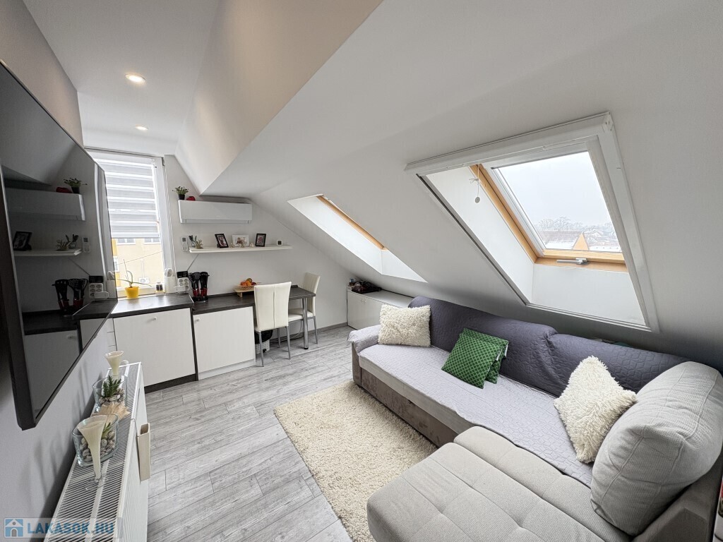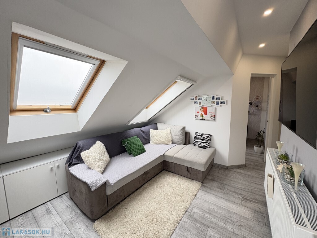 Kaposváron a Tüskevár városrész egyik kedvelt, csendes utcájában - Tóth Árpád utca - található társasház 1. emeletén 64 m2-es lakás, valamint a tetőtérben 32 m2-es apartman eladó. Az 1. emeleti lakásban 2 szoba, előszoba, fürdőszoba-wc, konyha, továbbá 20 m2-es fedett terasz találhatóak. A tetőtérben kialakított 32 m2-es lakásban előszoba-nappali-étkező-konyha, 1 félszoba, továbbá zuhanyzó-wc helyiségek kerültek kialakításra. A lakások fűtése és a melegvíz ellátása egy kombi gázkazánról megoldott, az alsó lakásban a nagyobb szobában egy kandalló is van, illetve a felső kis lakásban hűtő-fűtő légkondicionáló került felszerelésre. A lakásokhoz tartozik egy tároló, továbbá a társasház udvarában egy garázs, illetve egy lemezgarázs is. Az ingatlan befektetésnek is kitűnő lehetőség, vagy összeköltözőknek lehet alkalmas. Az ingatlanok kizárólag egyben eladók, egyenként nem kívánja a tulajdonos értékesíteni őket.
