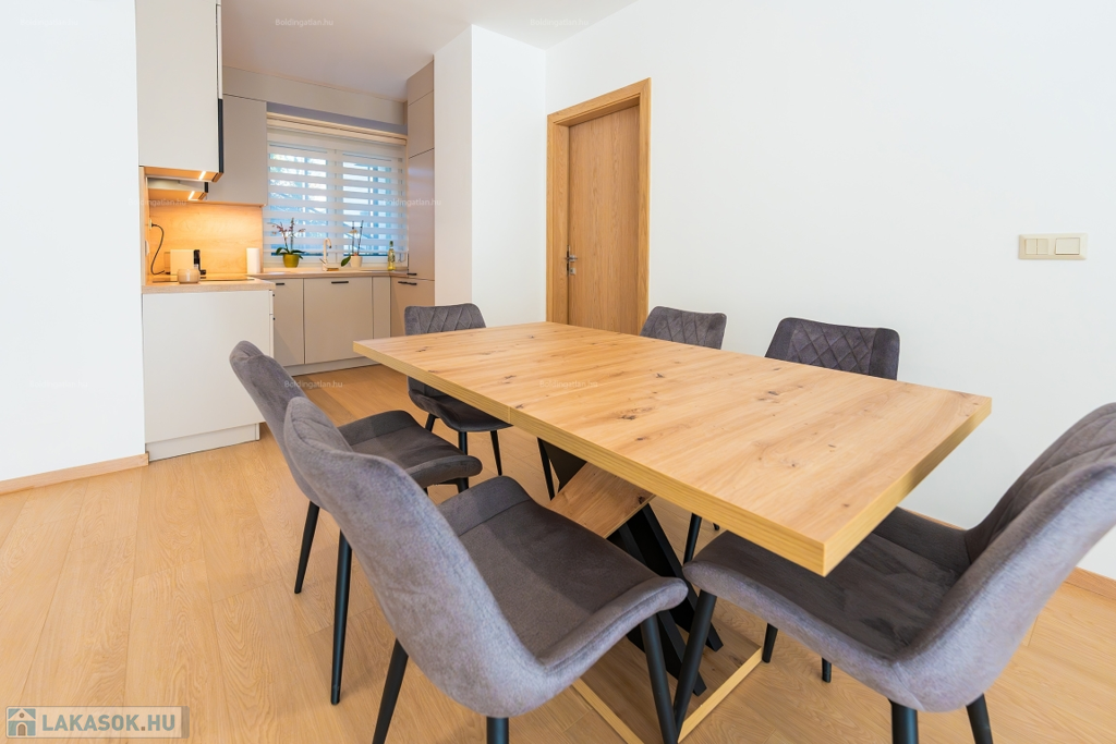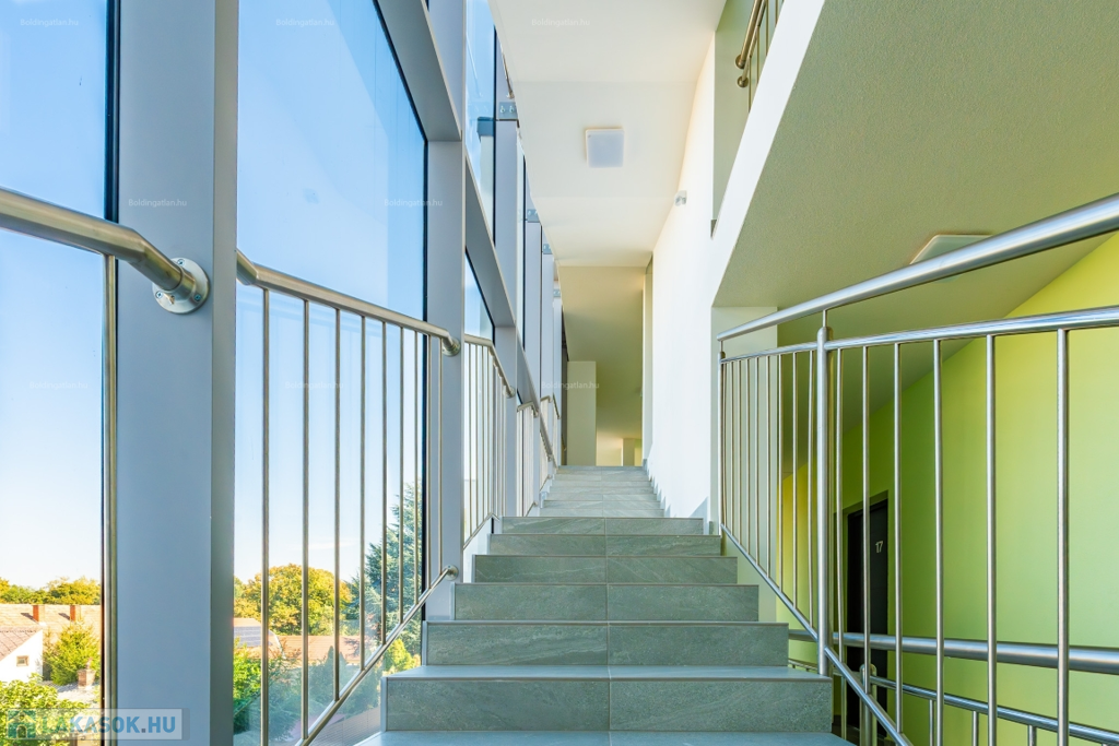 Kaposváron a belvárosban, a Dési Huber utcában - a kórház közelében - igényes kivitelben épült, modern architektúrájú 30 lakásos, új társasház 1. emeletén, 79 m2-es lakás 14 m2-es erkéllyel együtt eladó. A lakásban nappali-étkező-konyha, 2 szoba, közlekedő, szélfogó, fürdőszoba-wc, wc helyiségek kerültek kialakításra. Az épület korszerű energetikájú, a lakás fűtés levegő-víz hőszivattyús Nibe fűtésrendszerrel - padlófűtéssel, a fürdőszobában elektromos törölközőszárító radiátorral biztosított, továbbá a lakás hűtése Gree típusú Fan-coil rendszerrel történik, a fürdőszobában magas minőségű Wellis szerelvények kerültek beszerelésre. A lakás fűtéséhez, vagy hűtéséhez szükséges villamosenergiát az épület tetején elhelyezett napelemek biztosítják, a társasházban központi vízlágyító berendezés is beszerelésre került. A lakáshoz igény esetén 3.000.000.- Ft-ért az épület zárt udvarában 1 személyautó részére parkolóhely megvásárolható! Az ingatlan megvásárlásához CSOK igényelhető!