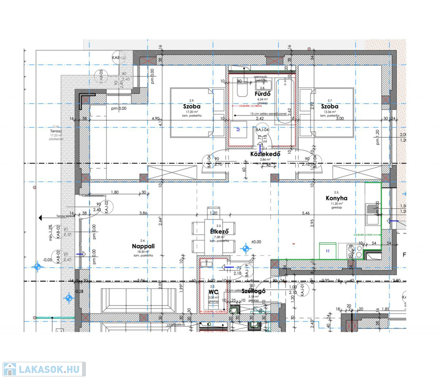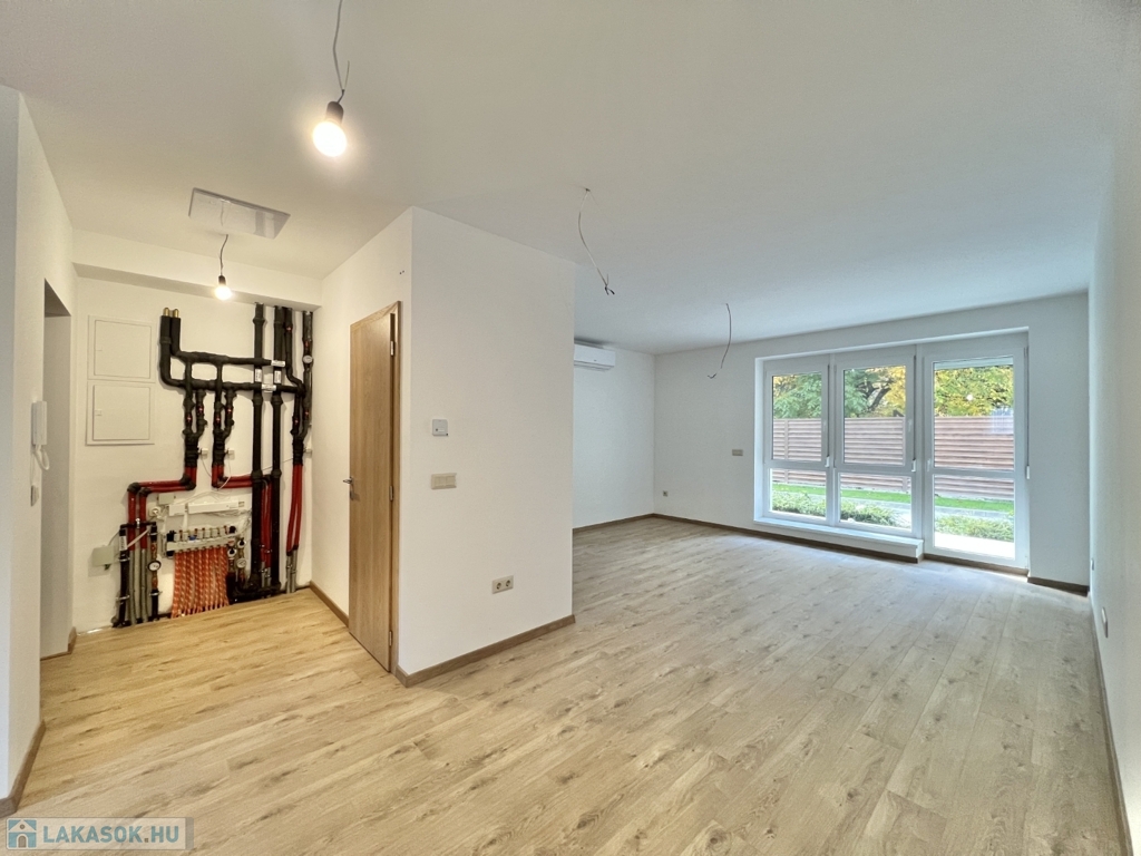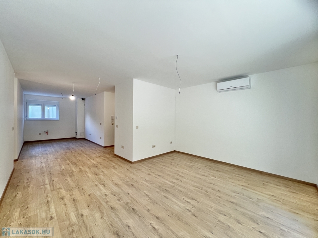 Kaposváron a belvárosban, a Dési Huber utcában - a kórház közelében - igényes kivitelben épült, modern architektúrájú 30 lakásos, új társasház földszintjén, 81 m2-es lakás, 16 m2-es terasszal együtt eladó. A lakásban nappali-étkező-konyha, 2 szoba, közlekedő, szélfogó, fürdőszoba, wc helyiségek kerültek kialakításra. Az épület korszerű energetikájú, a lakás fűtés levegő-víz hőszivattyús Nibe fűtésrendszerrel - padlófűtéssel, a fürdőszobában elektromos törölközőszárító radiátorral - van megoldva, továbbá a lakás hűtése fan-coil Gree rendszerrel történik. A lakás fűtéséhez, vagy hűtéséhez szükséges villamosenergiát az épület tetején elhelyezett napelemek biztosítják, a társasházban központi vízlágyító berendezés is beszerelésre került. A fürdőszobában magas minőségű Wellis szerelvények kerültek beszerelésre. A lakáshoz igény esetén 3.000.000.- Ft-ért az épület zárt udvarában 1 személyautó részére parkolóhely megvásárolható! Az ingatlan megvásárlásához CSOK igényelhető!