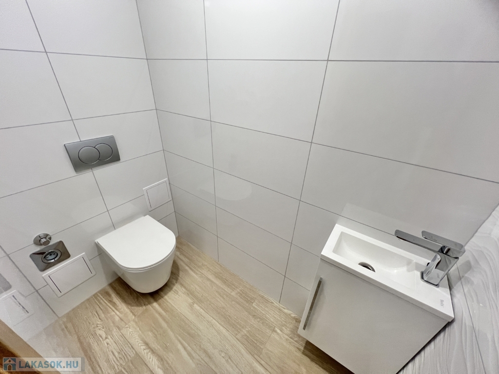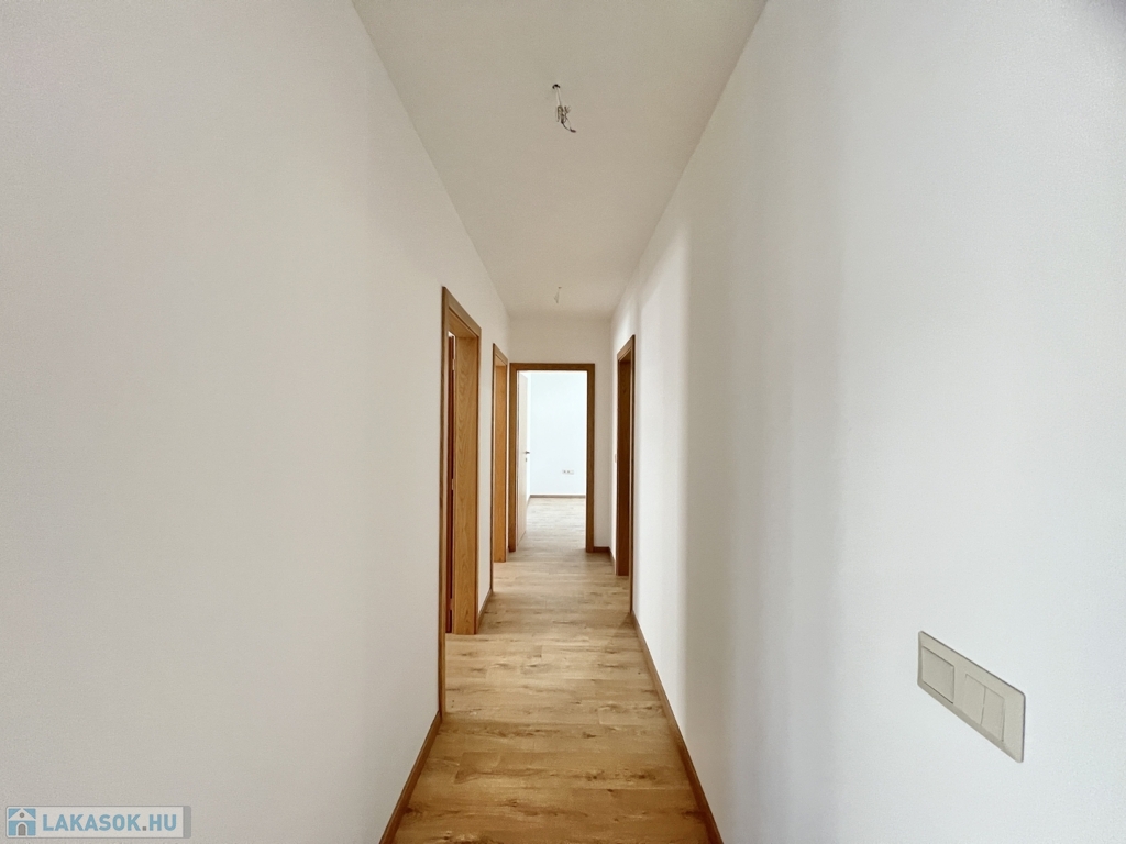 Kaposváron a belvárosban, a Dési Huber utcában - a kórház közelében - igényes kivitelben épült, modern architektúrájú 30 lakásos, új társasház földszintjén, 86 m2-es lakás, 20 m2-es terasszal együtt eladó. A lakásban nappali-étkező-konyha, 2 szoba, közlekedő, szélfogó, fürdőszoba, wc helyiségek kerültek kialakításra. Az épület korszerű energetikájú, a lakás fűtés levegő-víz hőszivattyús Nibe fűtésrendszerrel - padlófűtéssel, a fürdőszobában elektromos törölközőszárító radiátorral - van megoldva, továbbá a lakás hűtése fan-coil Gree rendszerrel történik. A lakás fűtéséhez, vagy hűtéséhez szükséges villamosenergiát az épület tetején elhelyezett napelemek biztosítják, a társasházban központi vízlágyító berendezés is beszerelésre került. A fürdőszobában magas minőségű Wellis szerelvények kerültek beszerelésre. A lakáshoz igény esetén 3.000.000.- Ft-ért az épület zárt udvarában 1 személyautó részére parkolóhely megvásárolható! Az ingatlan megvásárlásához CSOK igényelhető!Energetikai besorolás B