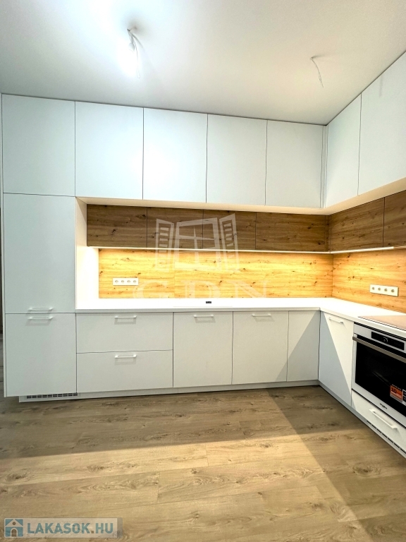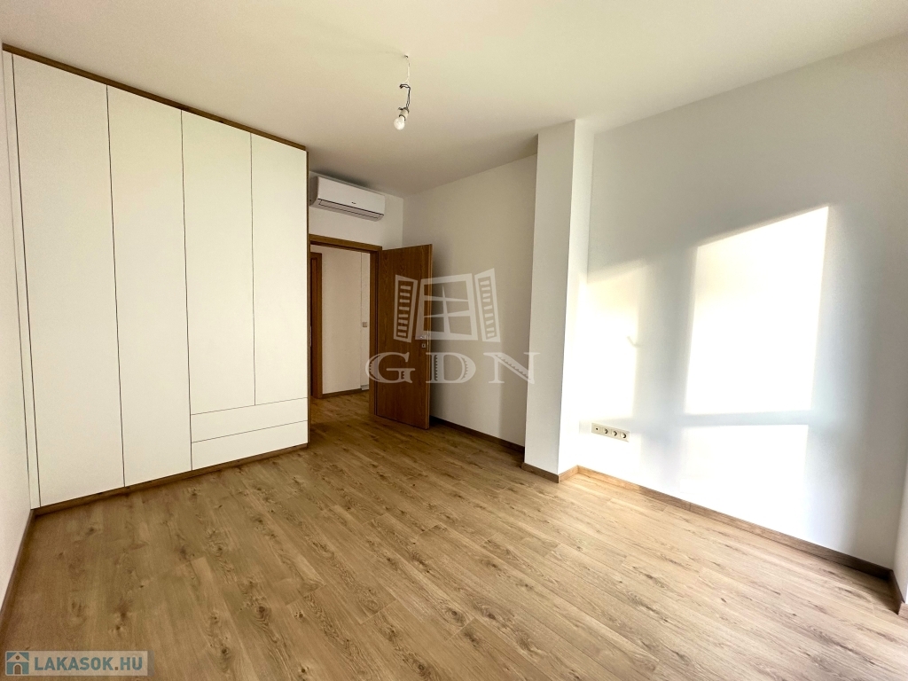 A 13-as számú lakás nettó fűtött alapterülete 81 m2, melyhez egy fantasztikus, kuriózumnak tekinthető 53 m2-es erkély is tartozik. A lakásban a tágas és világos amerikai konyhás nappalin túl további 2 szoba, előtér, fürdőszoba, mellékhelyiség, közlekedő és egy kamra került kialakításra.