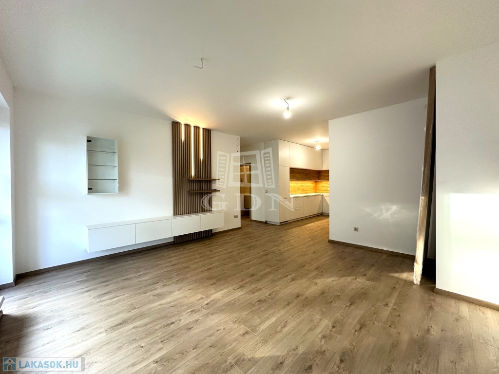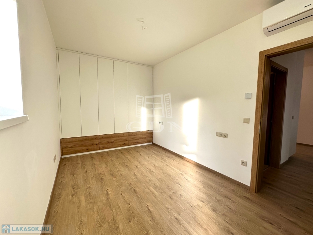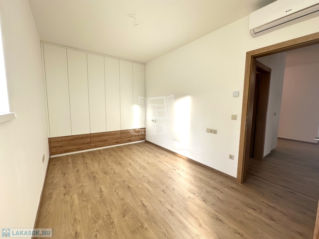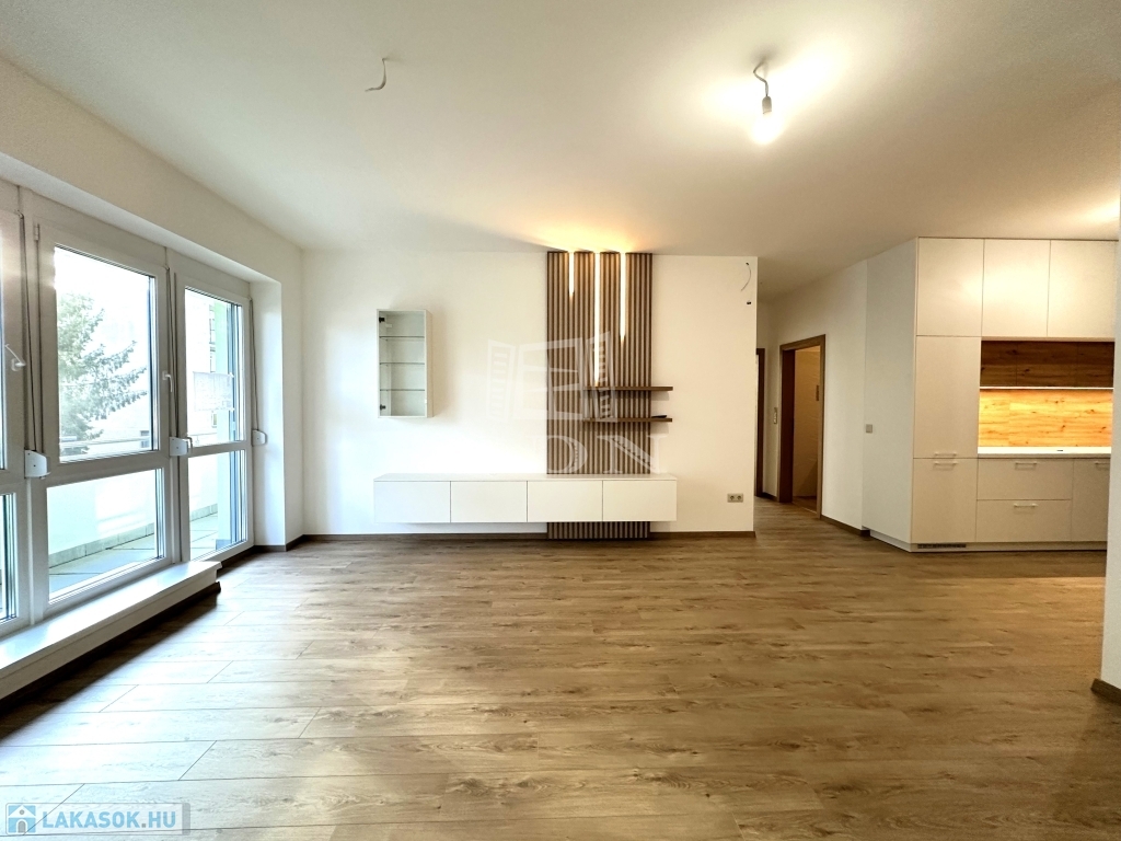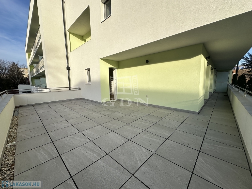A 9-es számú lakáshoz egy fantasztikus, kuriózumnak tekinthető 53 m2-es erkély is tartozik. A lakásban a tágas és világos amerikai konyhás nappalin túl további 2 szoba, előtér, fürdőszoba, mellékhelyiség, közlekedő és egy kamra került kialakításra.