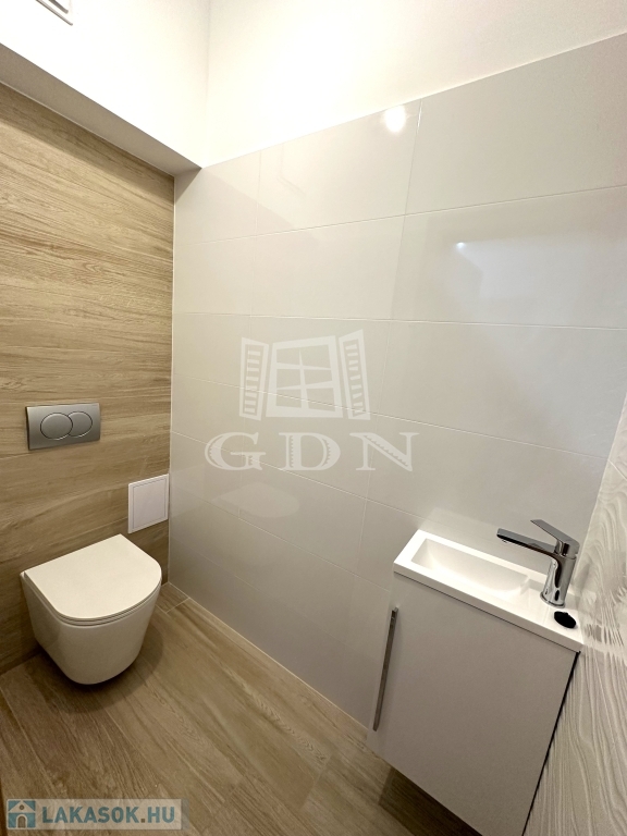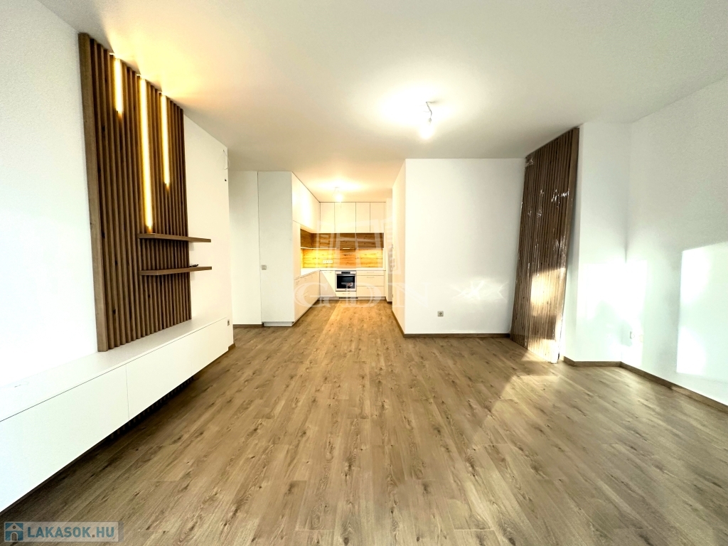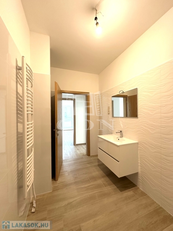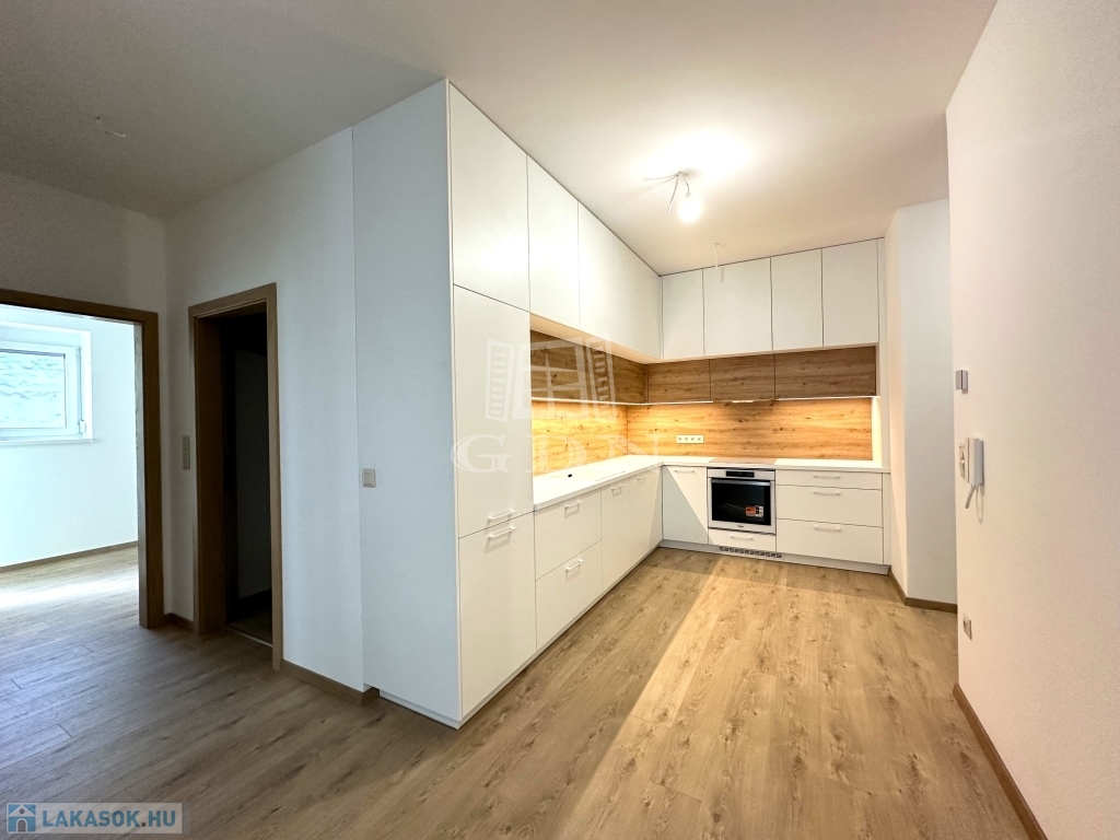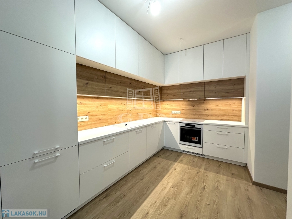 A 9-es számú lakáshoz egy fantasztikus, kuriózumnak tekinthető 53 m2-es erkély is tartozik. A lakásban a tágas és világos amerikai konyhás nappalin túl további 2 szoba, előtér, fürdőszoba, mellékhelyiség, közlekedő és egy kamra került kialakításra.