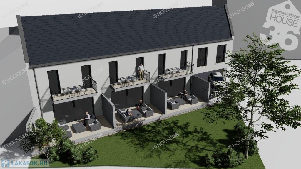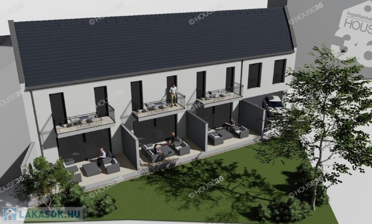 A társasházban 3 db lakáson belül 2 szintes saját kertkapcsolatos sorházi lakás kerül kialakításra, illetve 1 db exclusive, 1 szintes lakás, külön bejárattal, amerikai konyhával, nappalival, 3 hálóval, 2 fürdővel, nagy terasszal.
