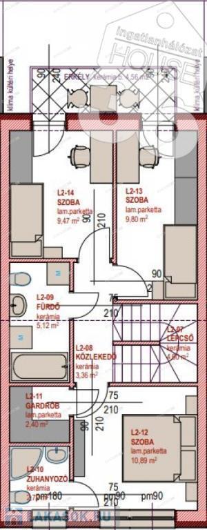 2. lakás: 92,45 m2, terasz: 16,27 m2, erkély: 4,56 m2