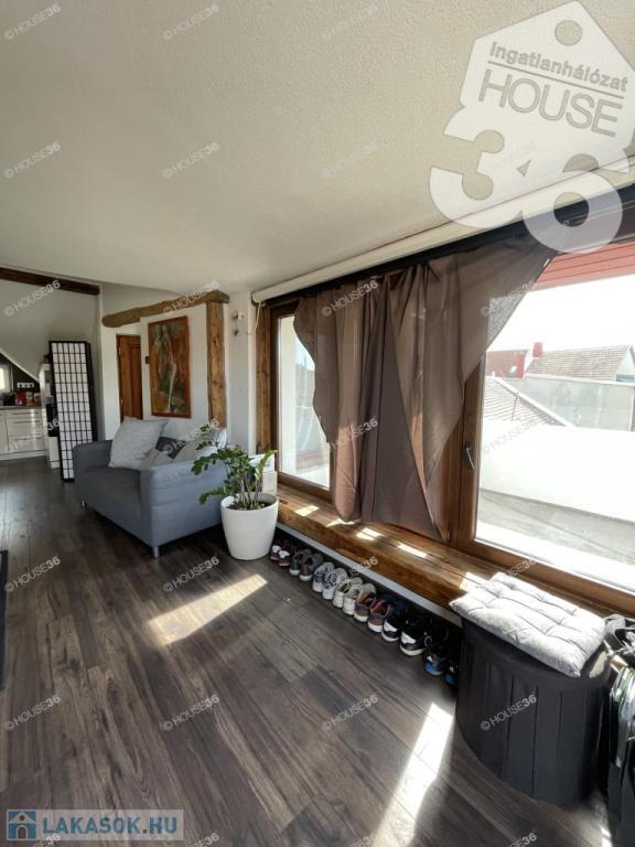 Kecskemét belvárosában eladó nettó 32 m2-es tetőtéri lakás.