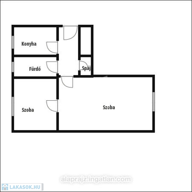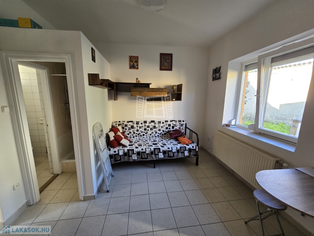 Alsó szinten egy 19 nm szoba, konyha, wc, fürdőszoba tusolóval.