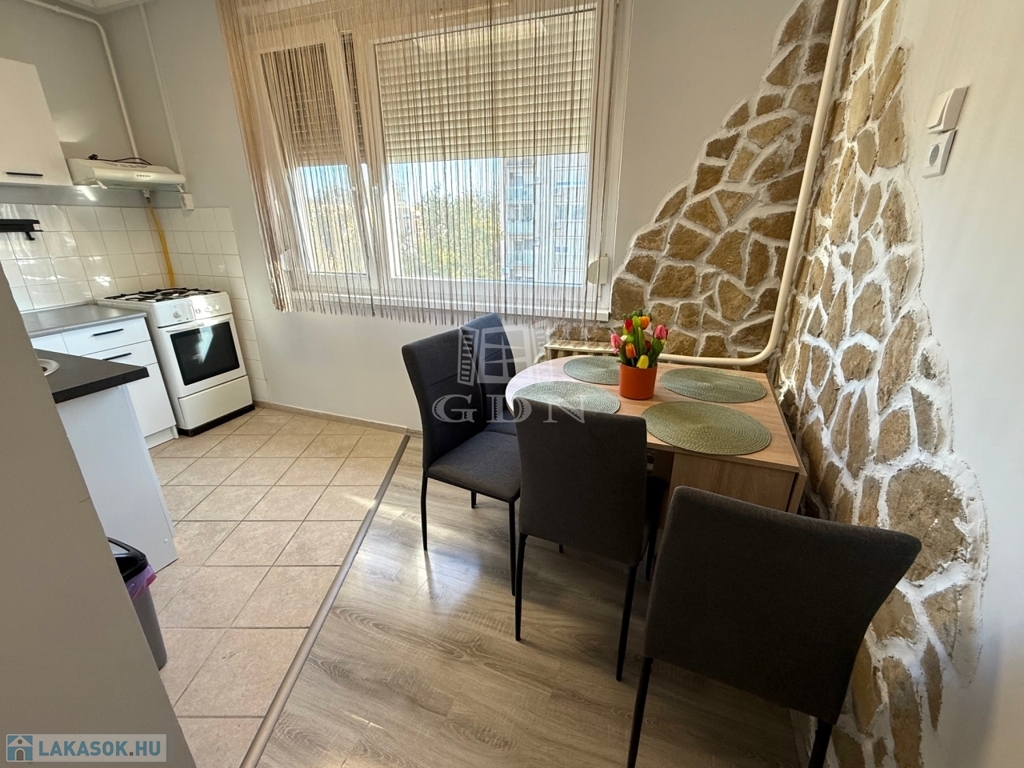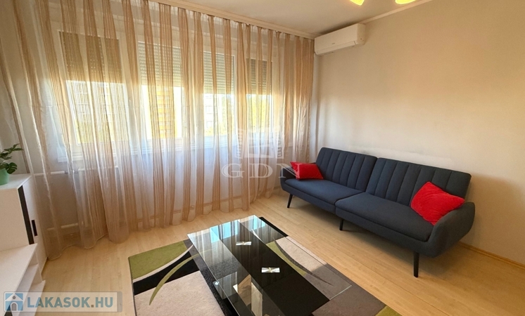 Kecskemét, Széchenyivárosban, liftes társasház 5. emeletén, 55 nm, 2 szobás, felújított lakás eladó. Az ingatlan 3 éve lett felújítva, új konyhabútor, biztonsági bejárati ajtó, ablakok cseréltek, redőnnyel és rovarhálóval felszerelve. Fenntartása alacsony költségekkel bír, távfűtéses, egyedi mérővel ellátva, hűtő-fűtő klíma beszerelve. Kiváló elhelyezkedés, bevásárlási lehetőségek (Lidl, Spár, Univer, kispiac), orvosi ellátás, bölcsőde, óvoda, iskola, buszmegállók gyalogosan 5 percnyi távolságra. Parkolás ingyenes. A lakás tehermentes, azonnal birtokbavehető, a fotókon látható gépekkel, bútorokkal együtt.
