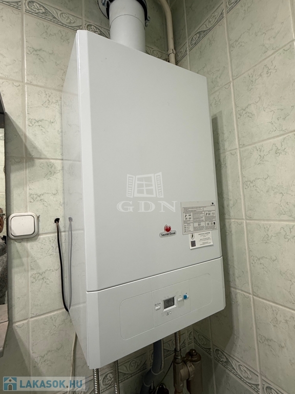 A társasház fűtéskorszerűsítésen, kéménybélelésen esett át, melynek keretében új gázkazán került beépítésre a lakásban. Ezen munkálatok miatt jelenleg nincs konyhabútor, az új tulajdonos egyéni elképzelése szerint alakíthatja ki. A lakás zárt udvarból, néhány lépcsővel közelíthető meg, ahol található a gépkocsibeálló is, mely a vételár részét képezi.