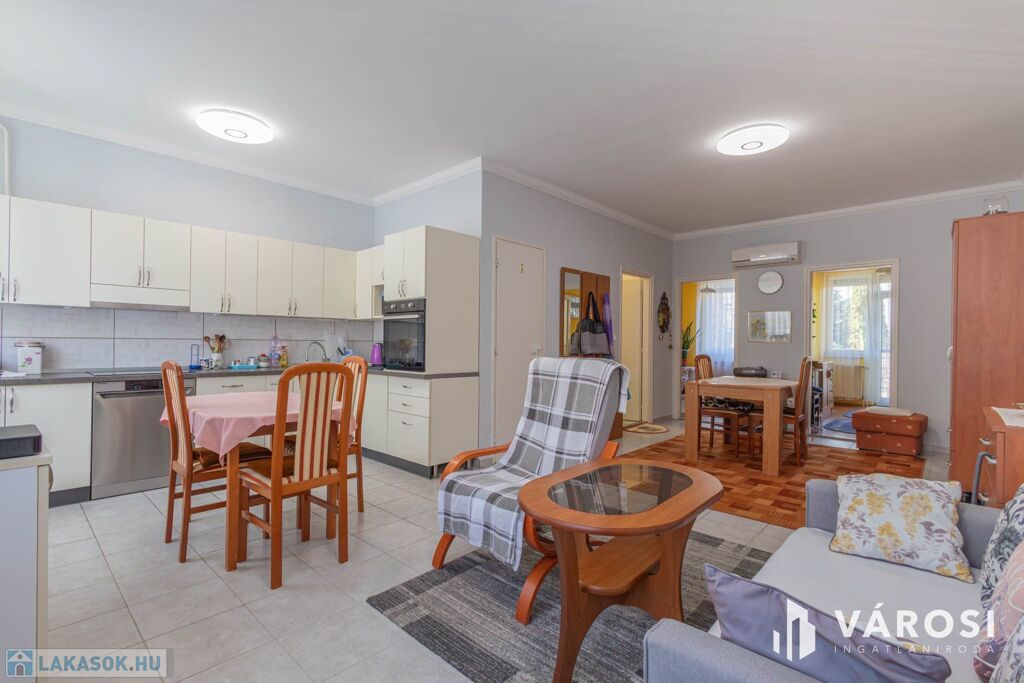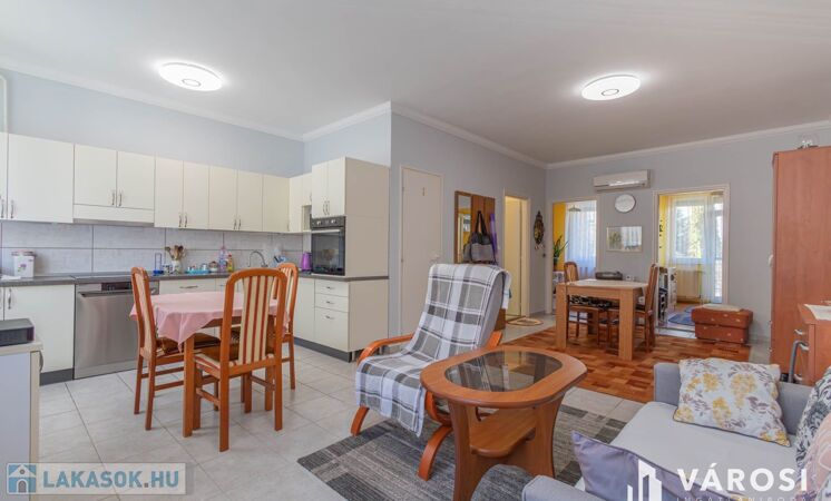Eladó Kecskemét közkedvelt Széchenyiváros városrészének csendes utcájában egy remek adottságokkal rendelkező 60 m²-es tégla lakás egy 4 szintes épületben. A társasház 2003-ban épült, liftes lépcsőházzal és házközponti fűtéssel rendelkezik. Ennek köszönhetően rendkívül alacsony rezsivel üzemeltethető a lakás. Az új nyílászáróknak, redőnyöknek és a klímának köszönhetően a nyári időszakban sem melegszik fel a lakás.