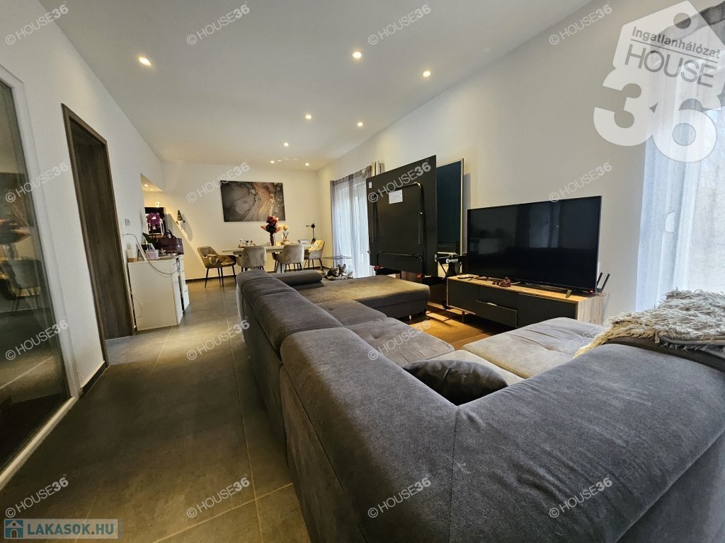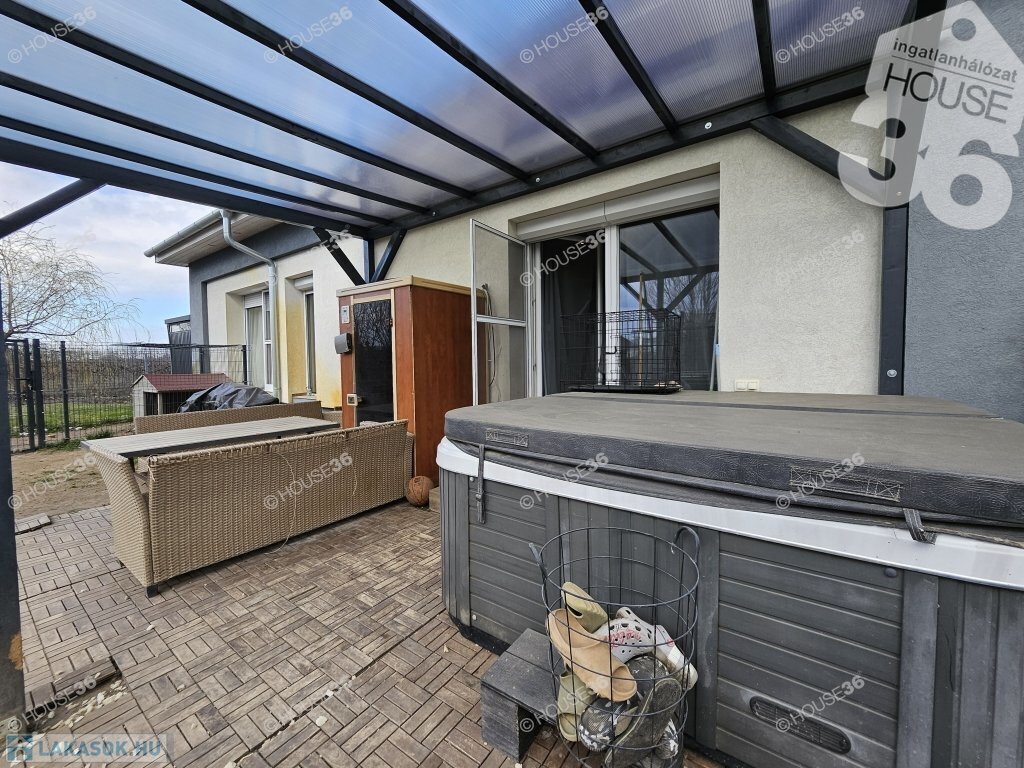 Kecskeméten, Kadafalva elején, 2019.évi, szigetelt, tégla építésű, 75 m2-es, nappali+ 2 szobás szélső sorház, saját nagyobb kerttel, garázzsal és zárt udvari beállóval eladó! Akár teljesen bútorozva (benne jacuzzi, finn szauna).