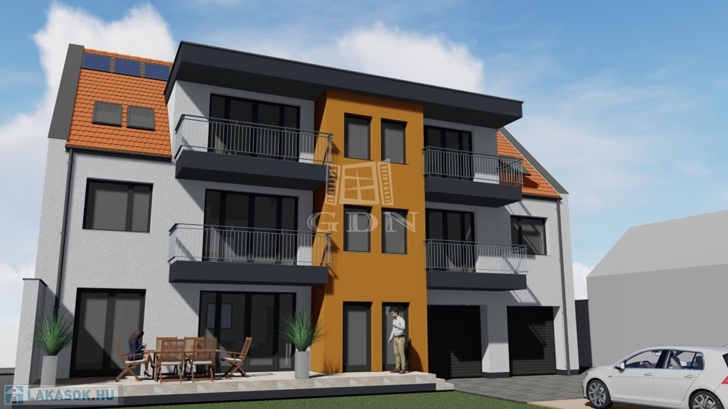 2026 júliusi kulcsrakész átadással, belváros közeli, most épülő, I. emeleti, nappali+3 szobás, 73,4 nm, erkélyes lakás, 5 lakásos társasházban eladó.