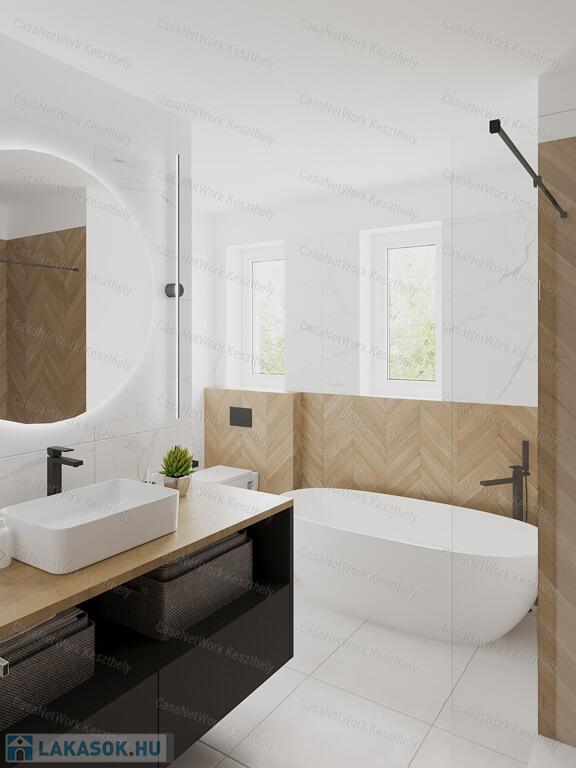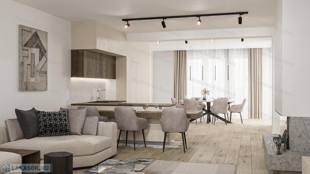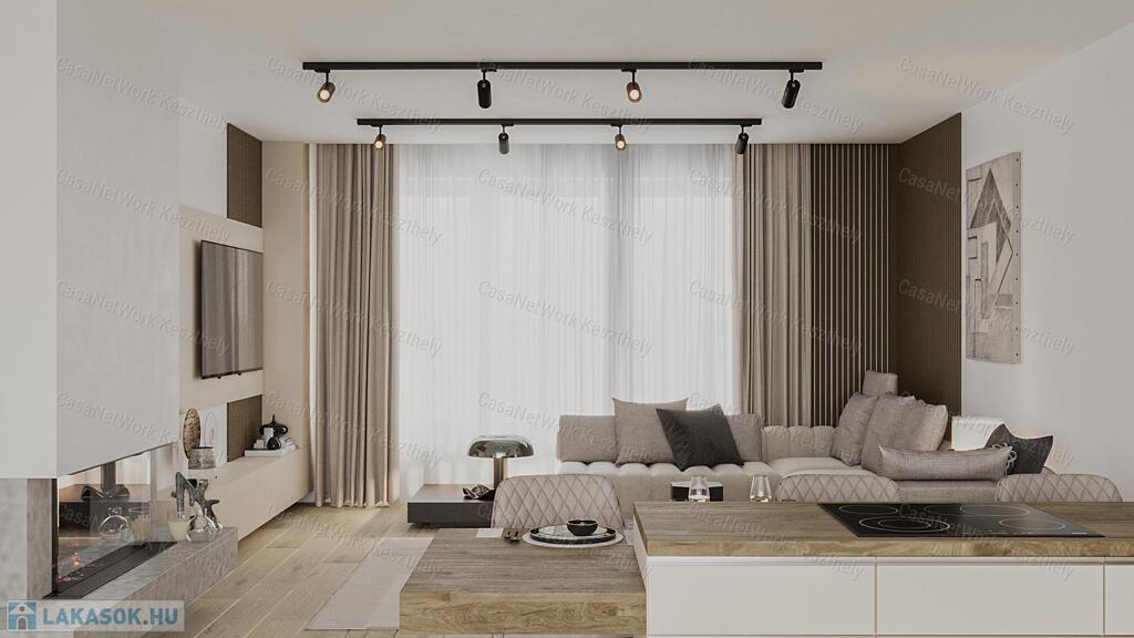 Keszthely frekventált és keresett városrészében eladó 2023-as átadással dupla komfortos 140 m2-es lakás +30 m2-es terasszal, 2 db kocsibeállóval, elektromos kapuval és saját kerttel!