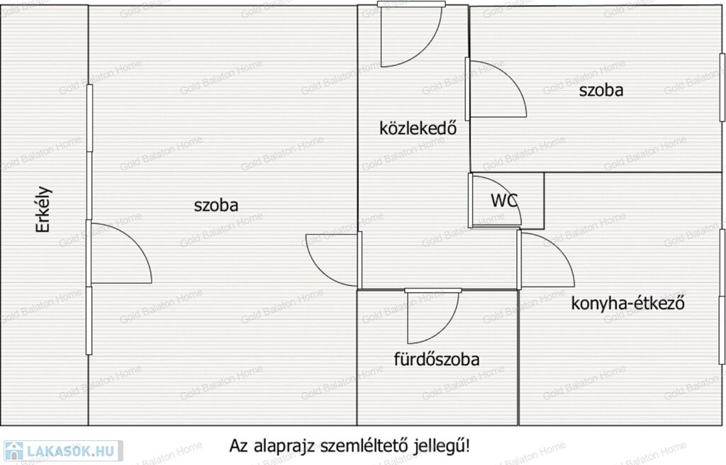 Lakás helyiségei: nappali, hálószoba, konyha, közlekedő, fürdőszoba, külön WC, erkély.
