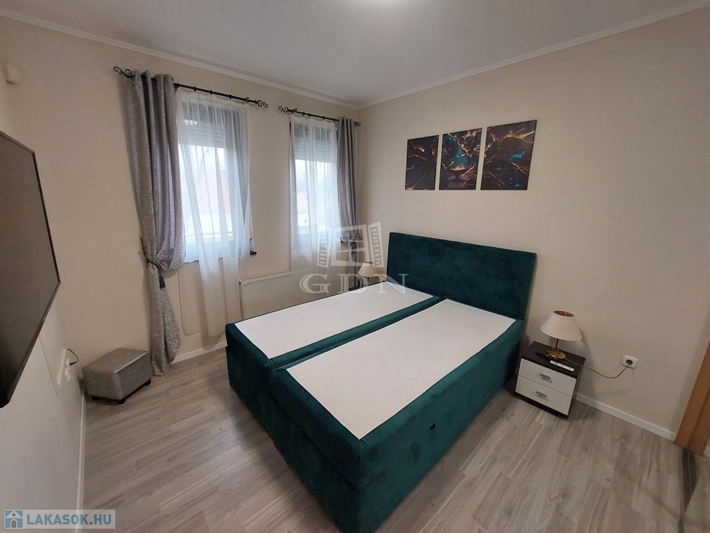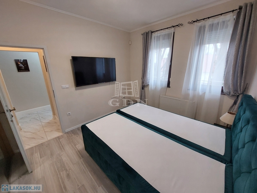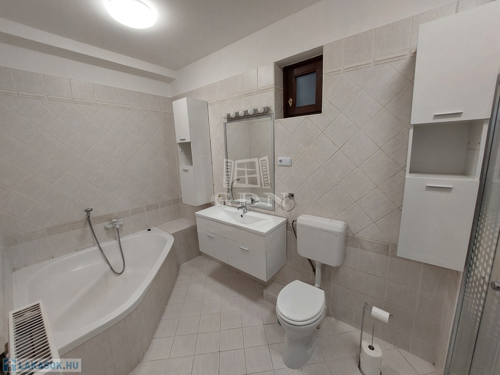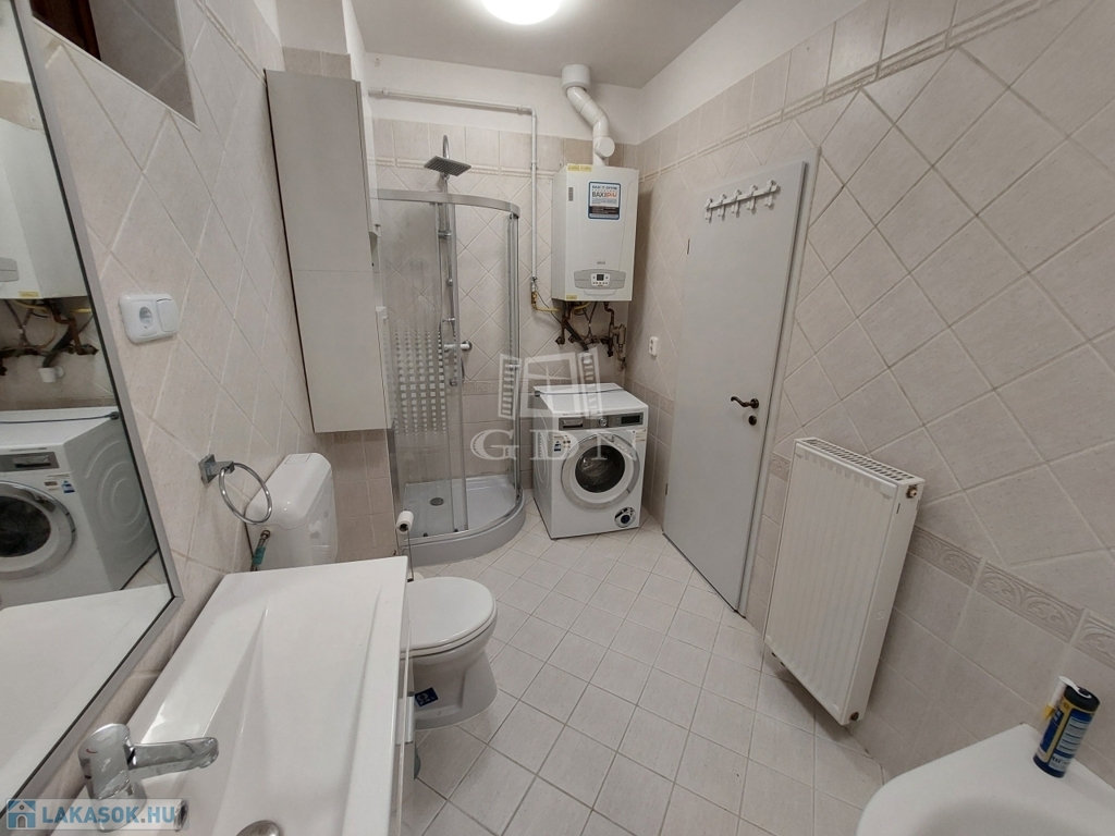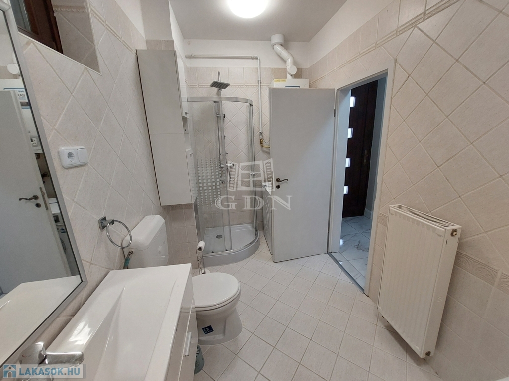 A belső elrendezés minden részlete tudatos tervezés eredménye. Az előtérből külön vendég WC nyílik, valamint egy exkluzív fürdőszoba, ahol wc, kád és zuhany is rendelkezésre áll. A hálószobában egyedi, tükörajtós beépített gardrób teszi izgalmassá a teret és biztosítja a maximális kényelmet. Innen tárul fel a lakás reprezentatív központja: a nagyvonalú, amerikai konyhás nappali–étkező, amely tökéletes teret ad elegáns vendéglátáshoz és meghitt mindennapokhoz egyaránt.