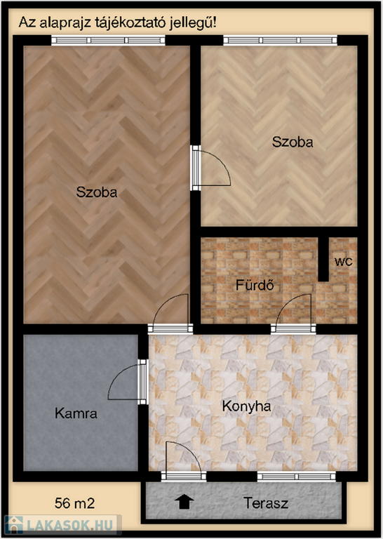 - Lakóterület: 56 m2