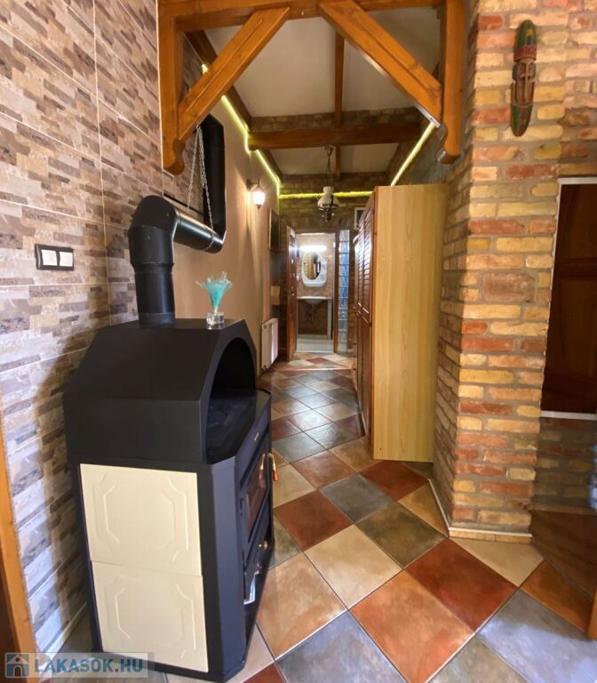 - Fűtés: kondenzációs gázkazán, vízteres kandalló