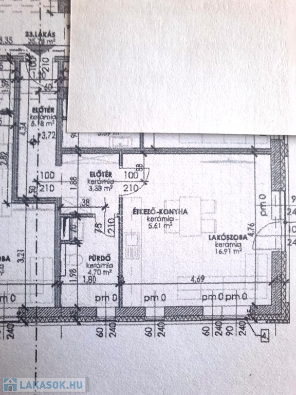 A feltüntetett ár az első emelet 23-as lakásra vonatkozik, 35,78 m2 lakótér, helyiségei: amerikai konyhás nappali, előtér, fürdőszoba.