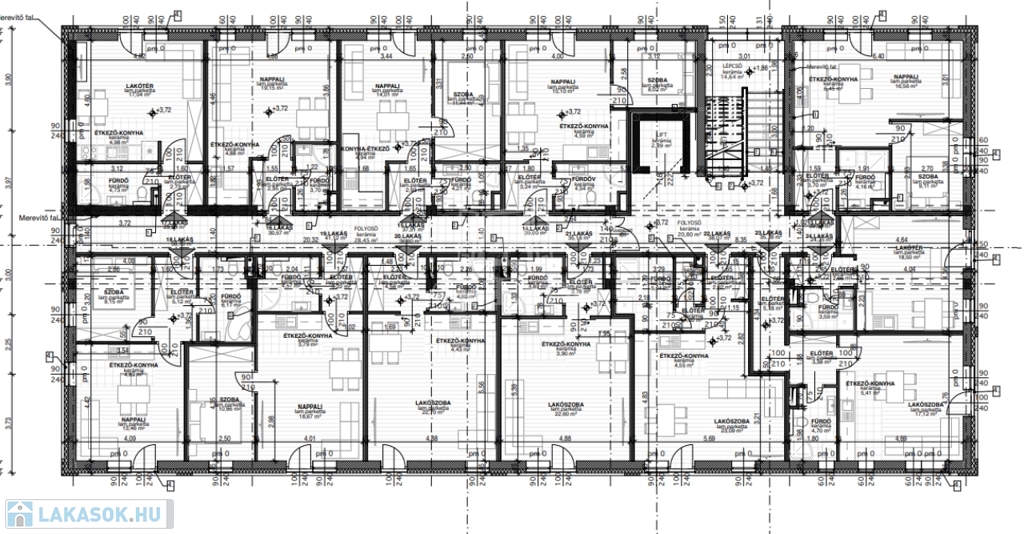 A társas-házban 31 db lakás kerül megépítésre, a földszinti és első emeleti lakások erkély nélküliek, a 2 emeleti lakások terasz kapcsolattal rendelkeznek.